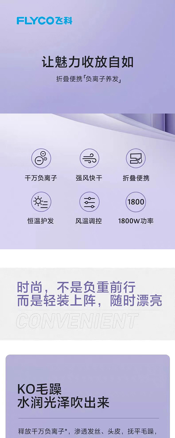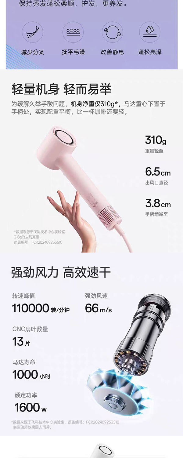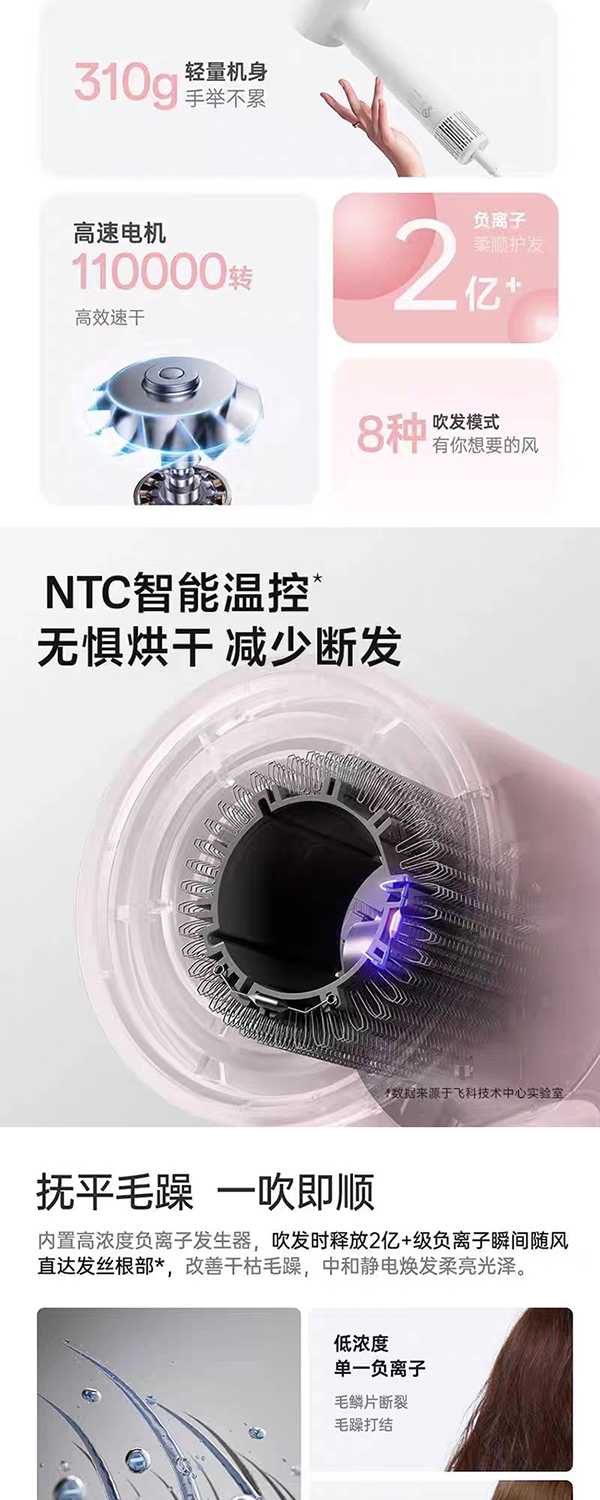 飞科高速吹风机2亿负离子家用护发大风力不伤发速干吹风筒FH6370