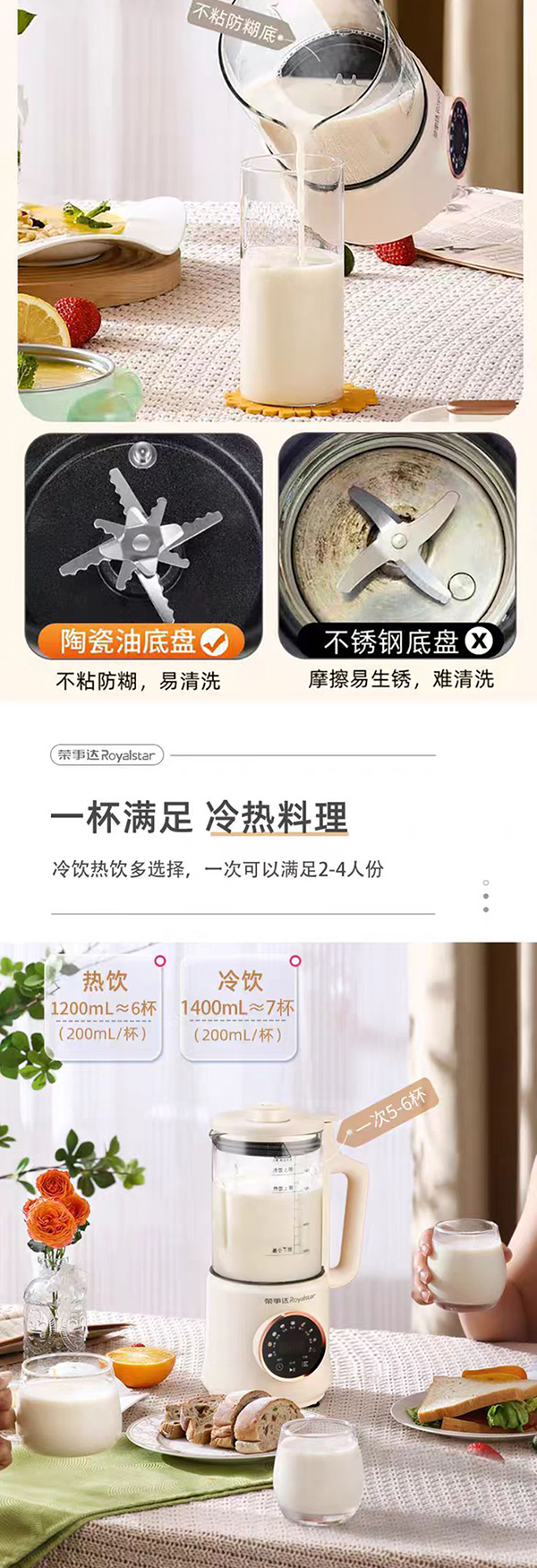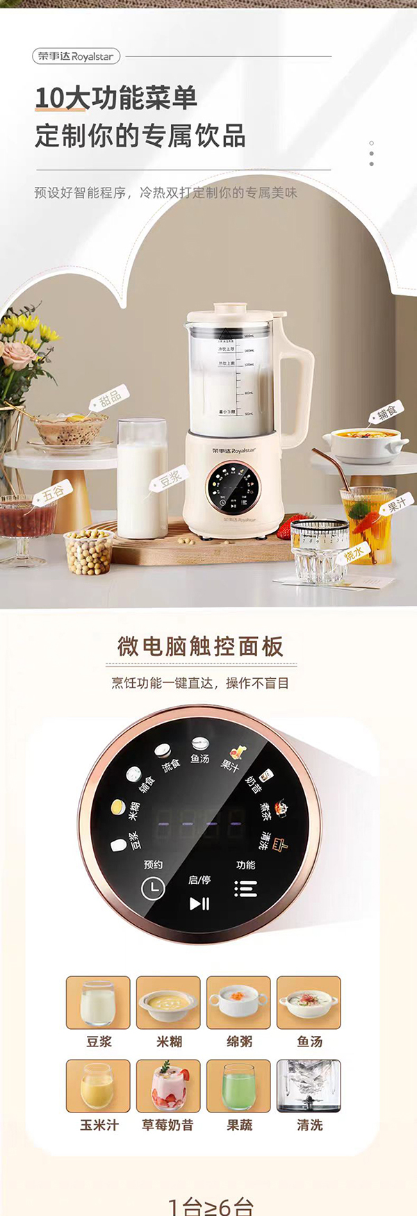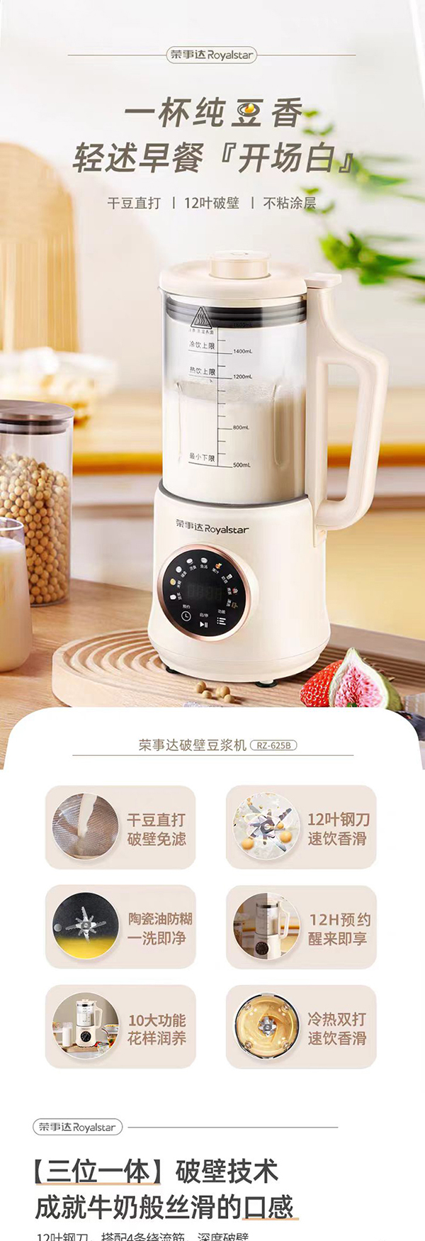 荣事达新品静音破壁机小型家用全自动豆浆机无渣免煮榨汁料理机