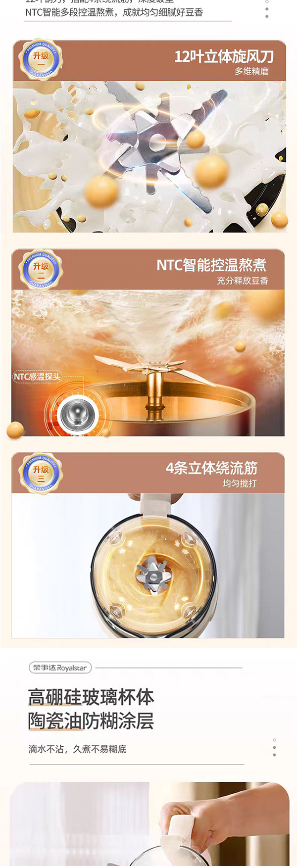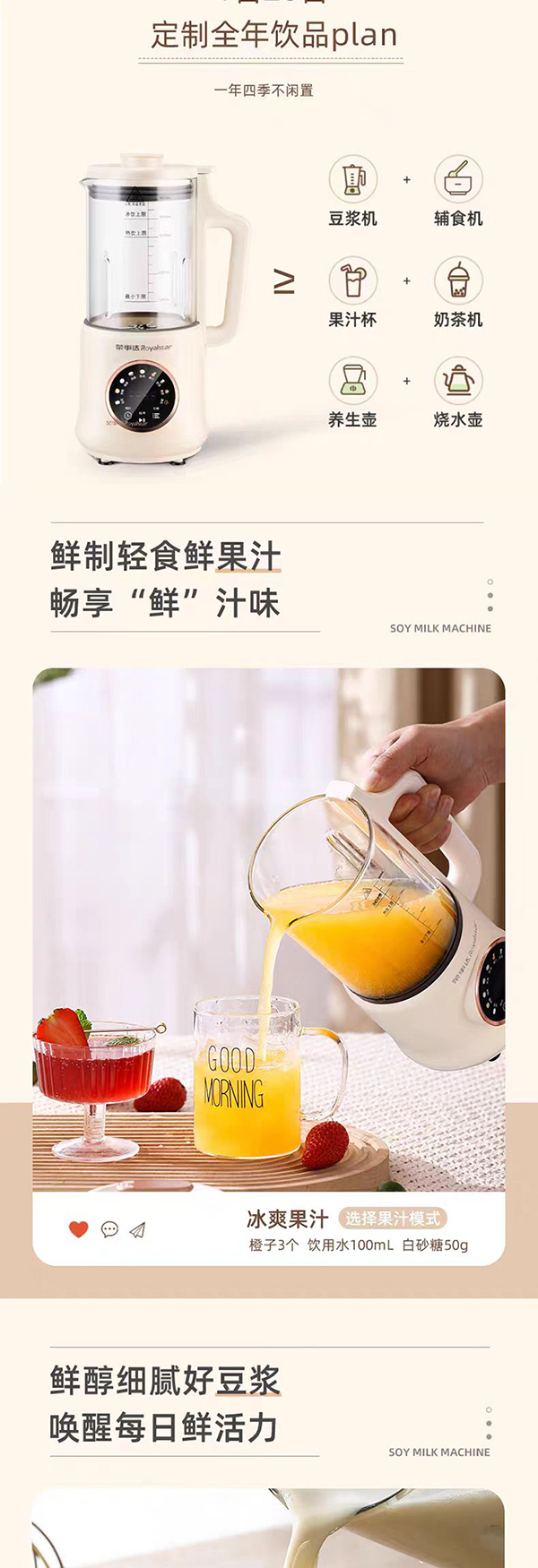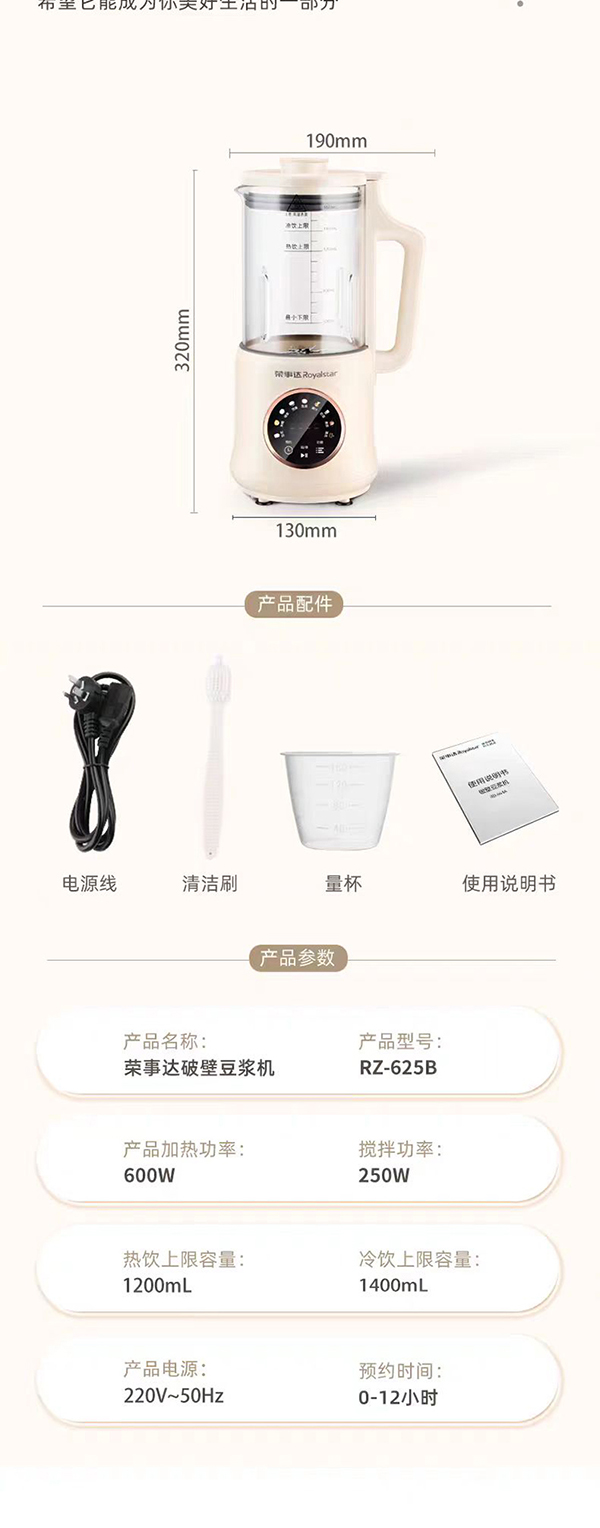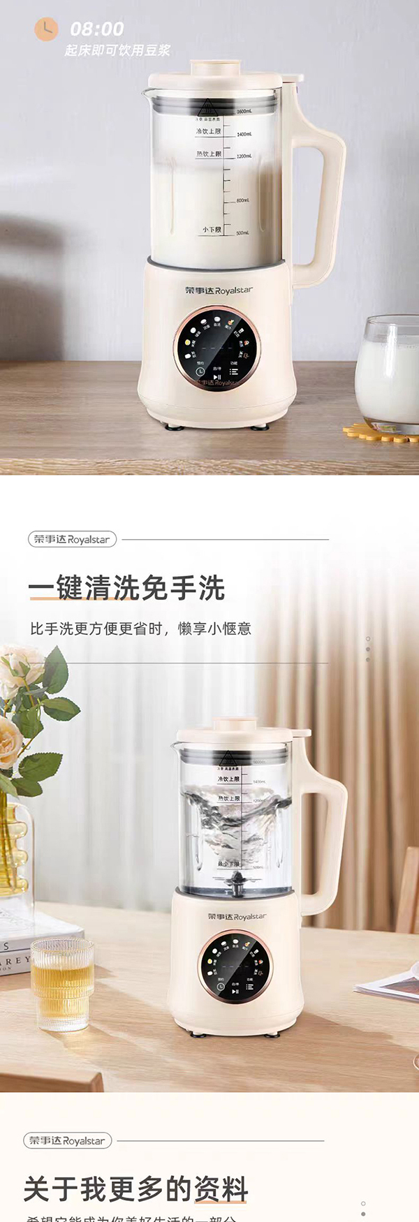 荣事达新品静音破壁机小型家用全自动豆浆机无渣免煮榨汁料理机