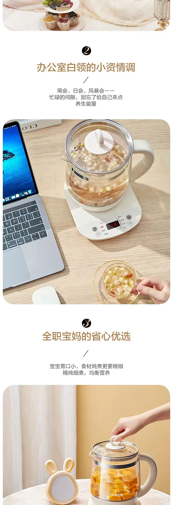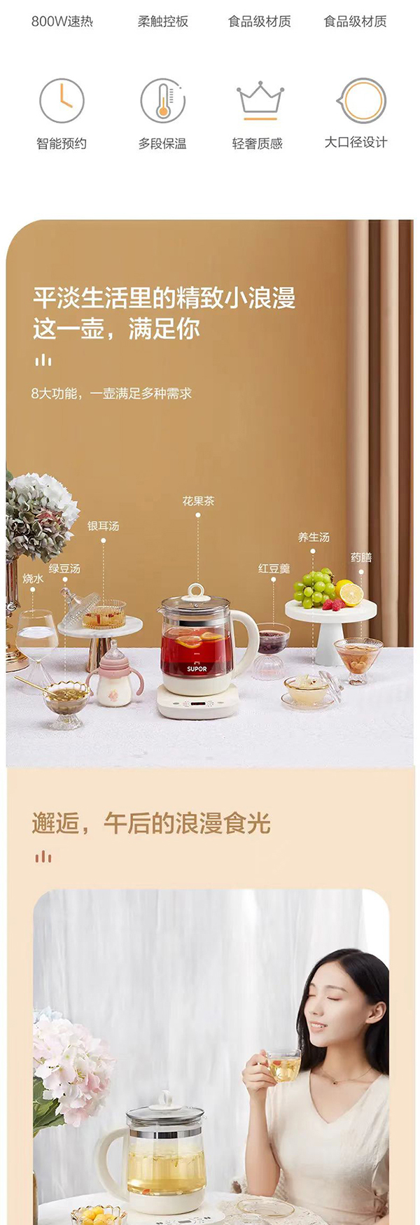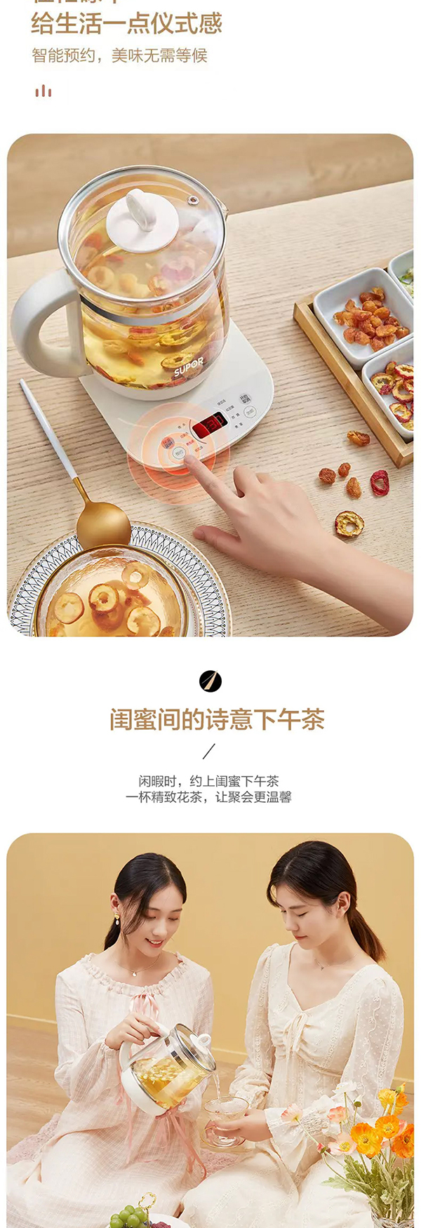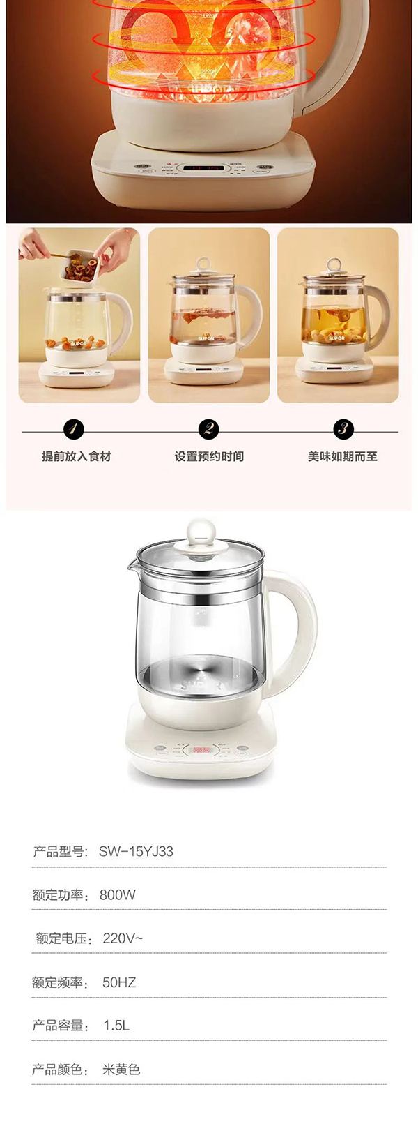 苏泊尔养生壶 1.5L全自动按键高矿明硅玻璃办公室煮花茶壶SW-15YJ