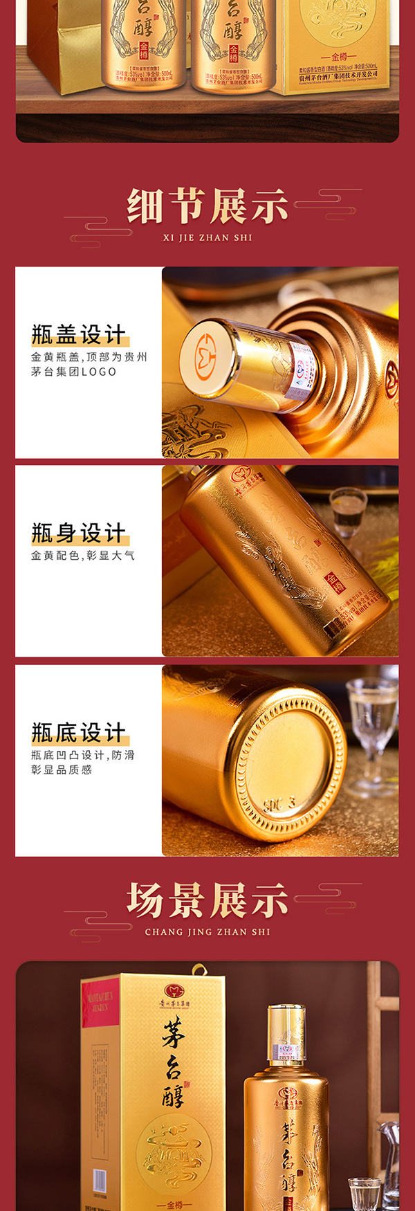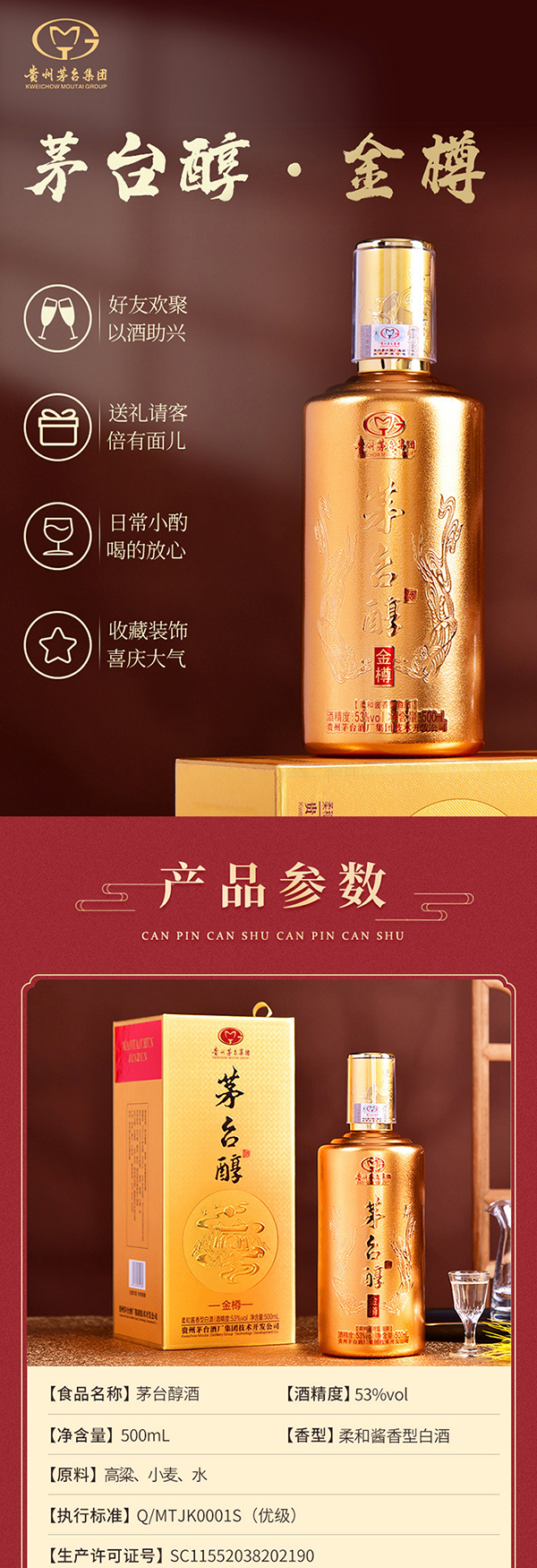 茅台醇金樽柔和酱香型 白酒 53度500ml1瓶飞天仕女图