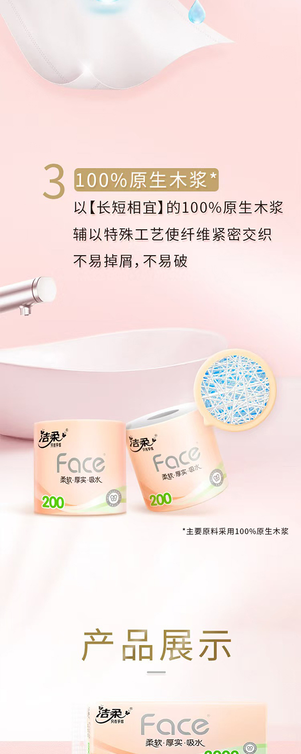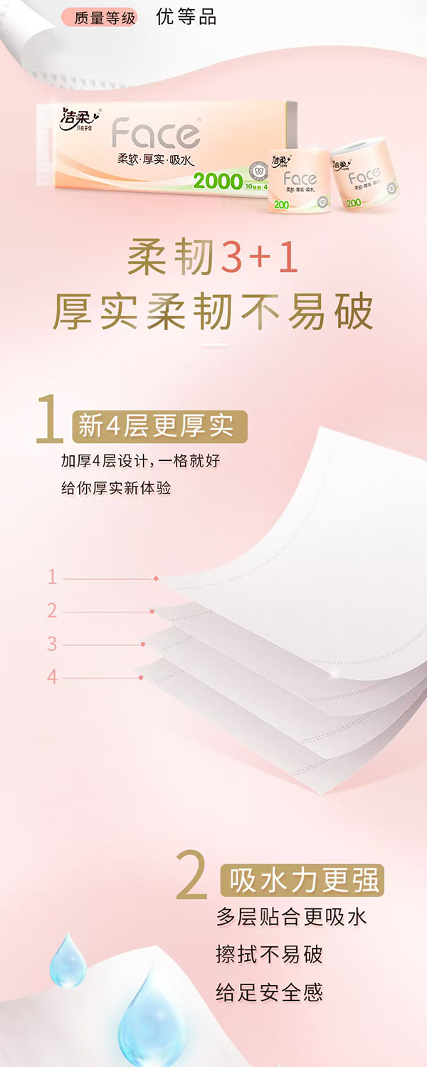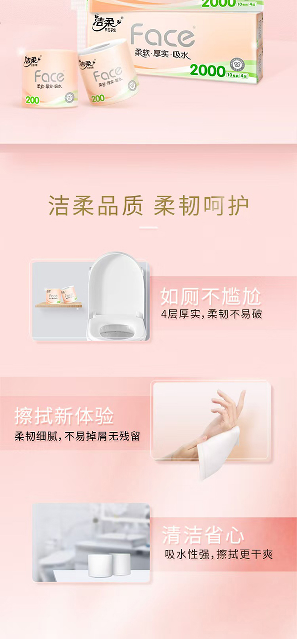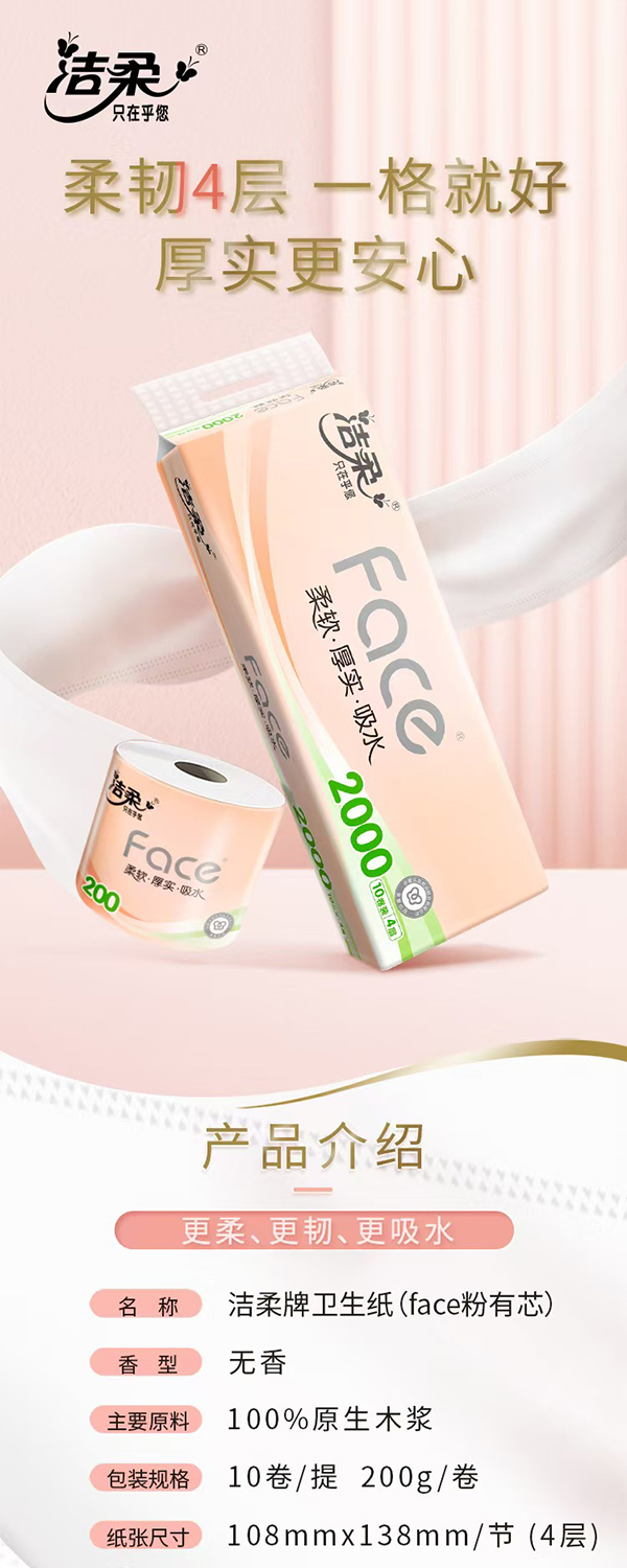 洁柔Face粉系列4层有芯卷纸200gx10卷