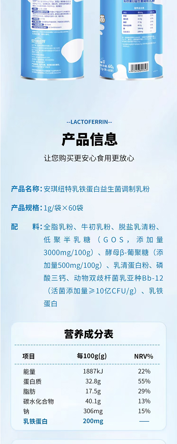 安琪纽特乳铁蛋白益生菌调制乳粉1g*60袋