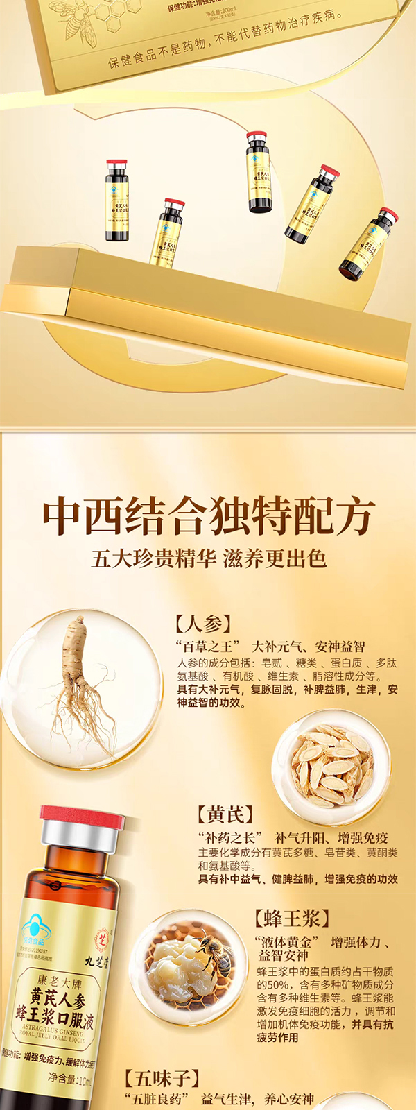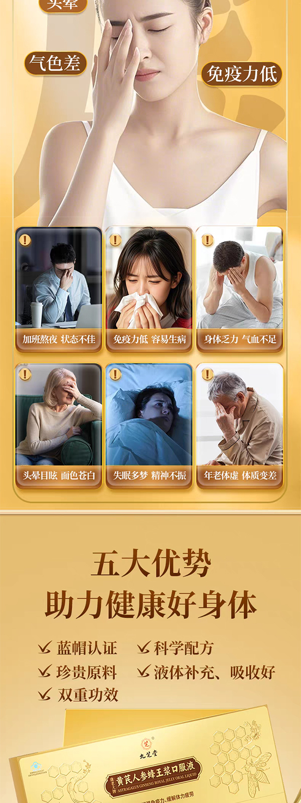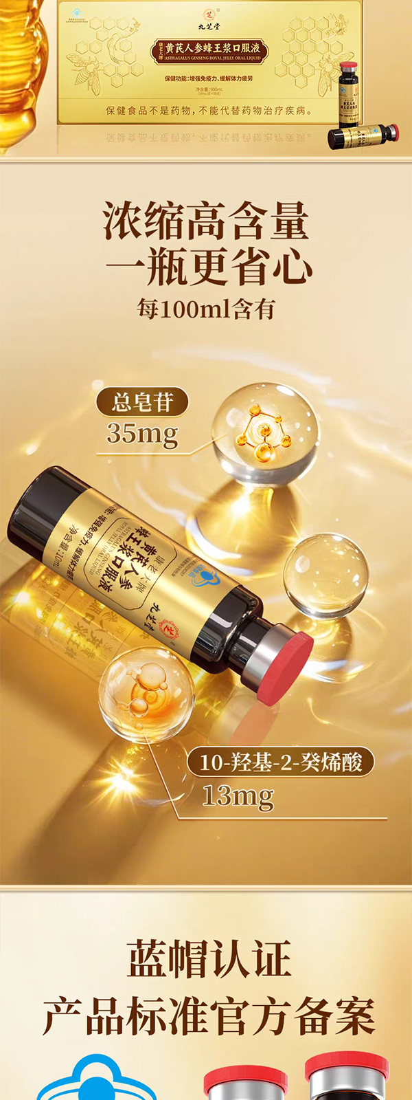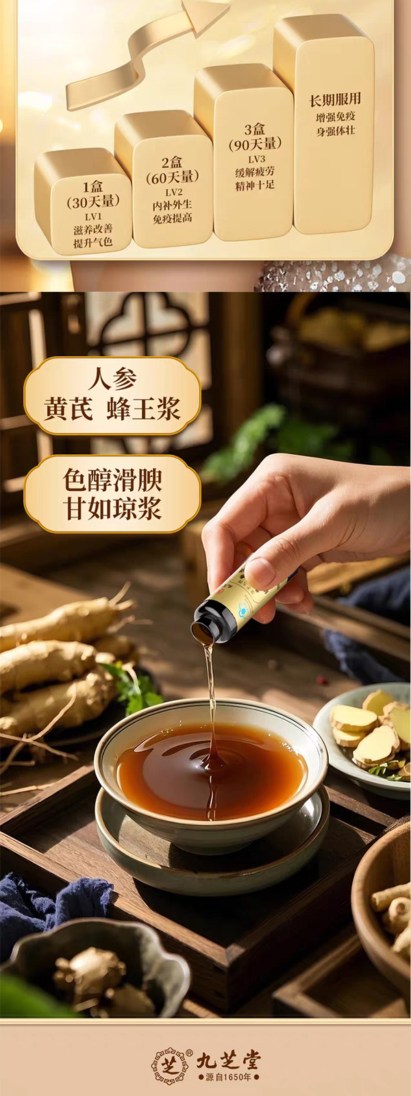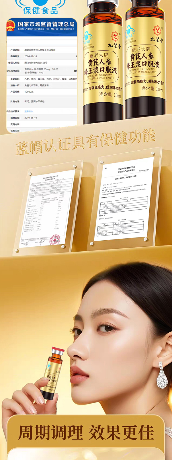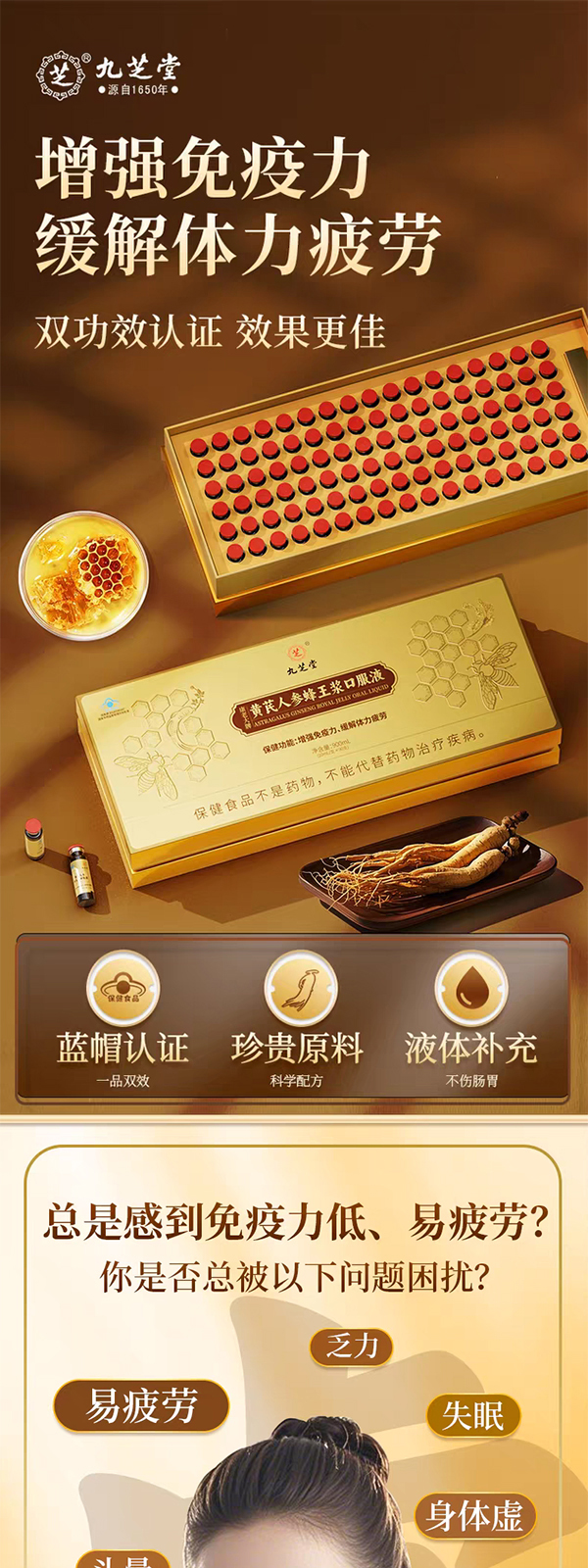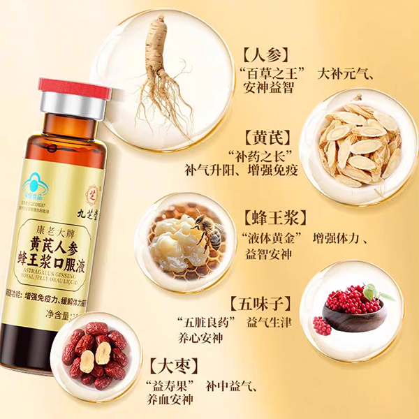 九芝堂人参蜂王浆口服液老年人增强免疫力提高补气血养血小金瓶