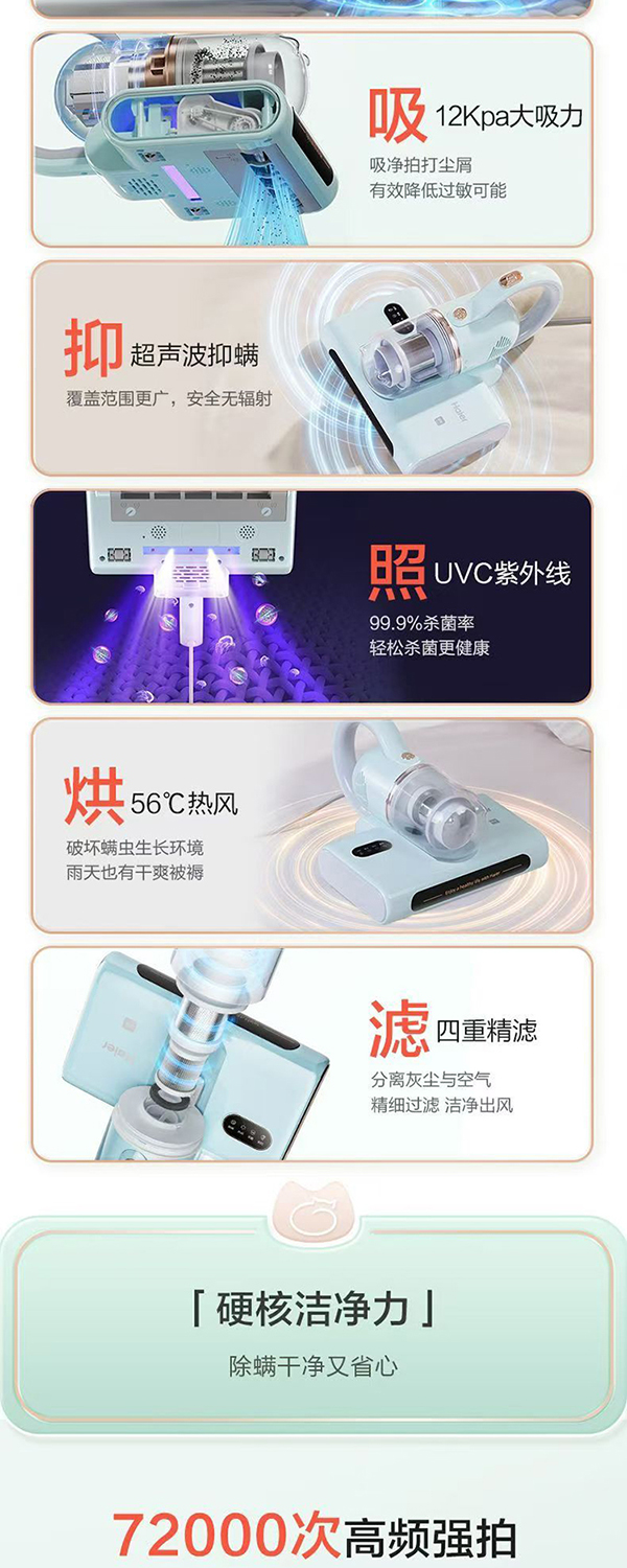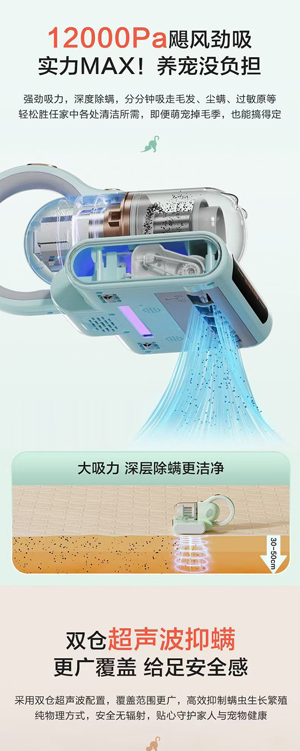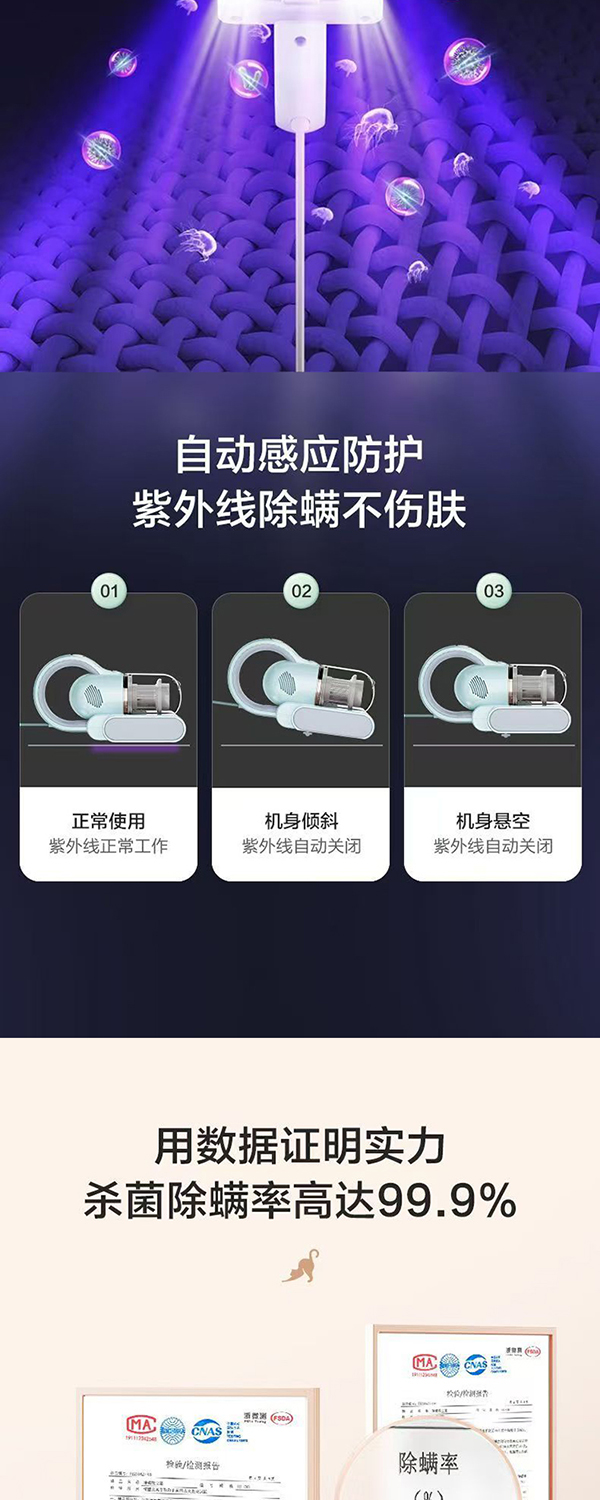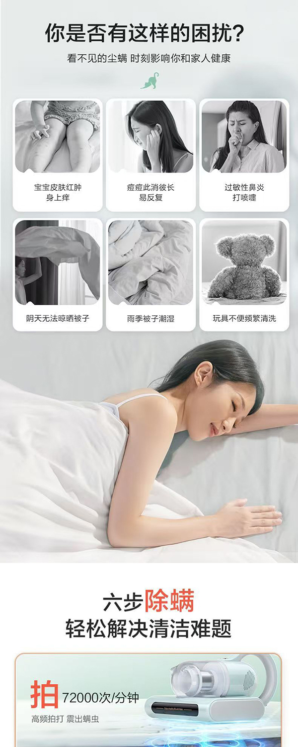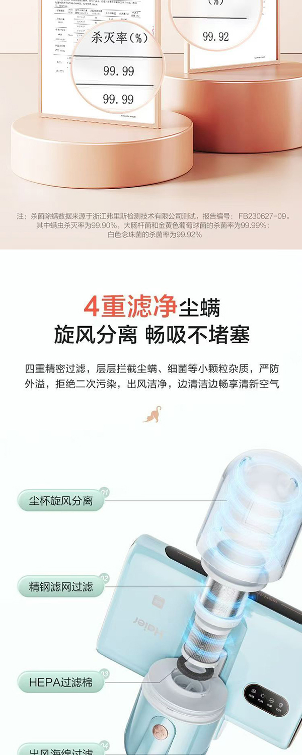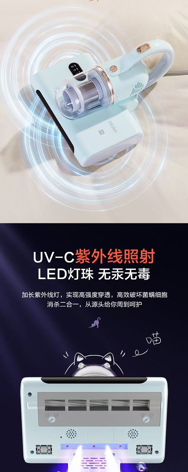海尔除螨仪家用紫外线手持杀菌除螨神器小型大吸力拍打扫床去螨虫