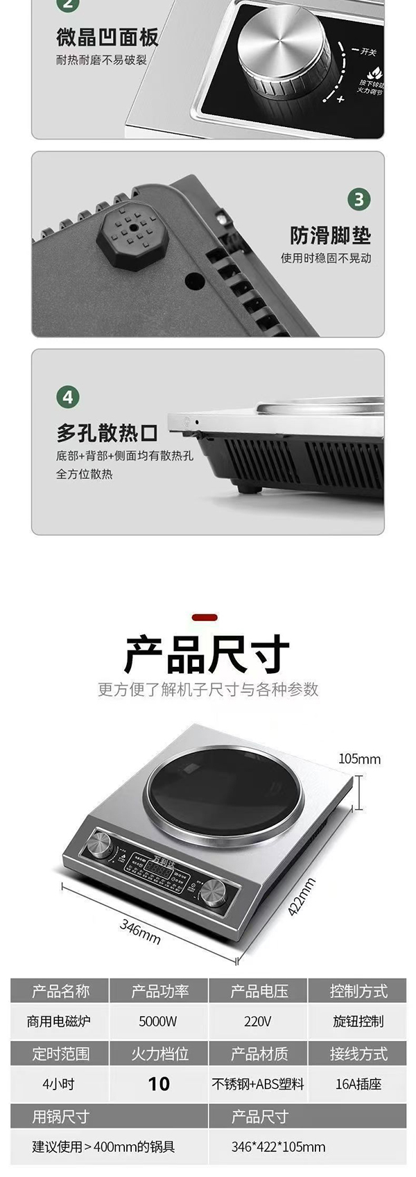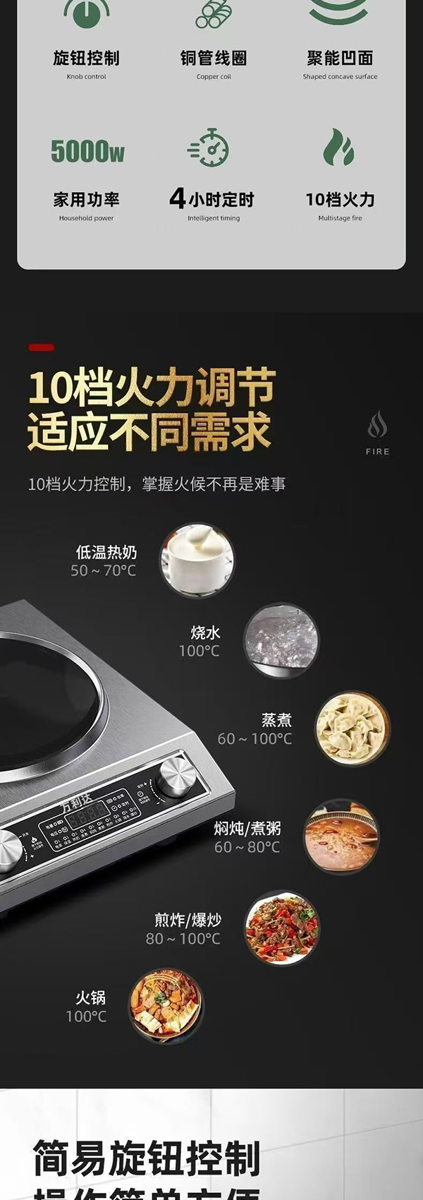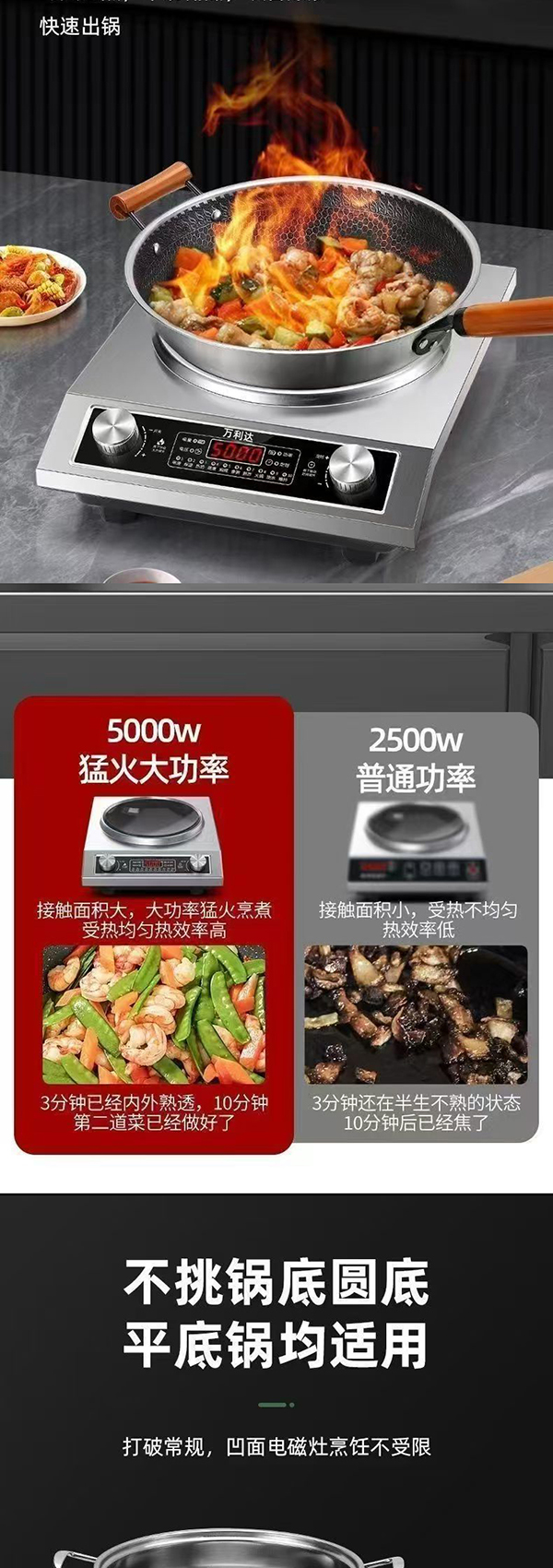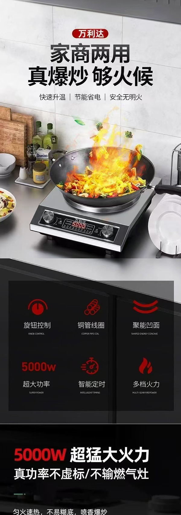 万利达正品凹面电磁灶5000W大清凉