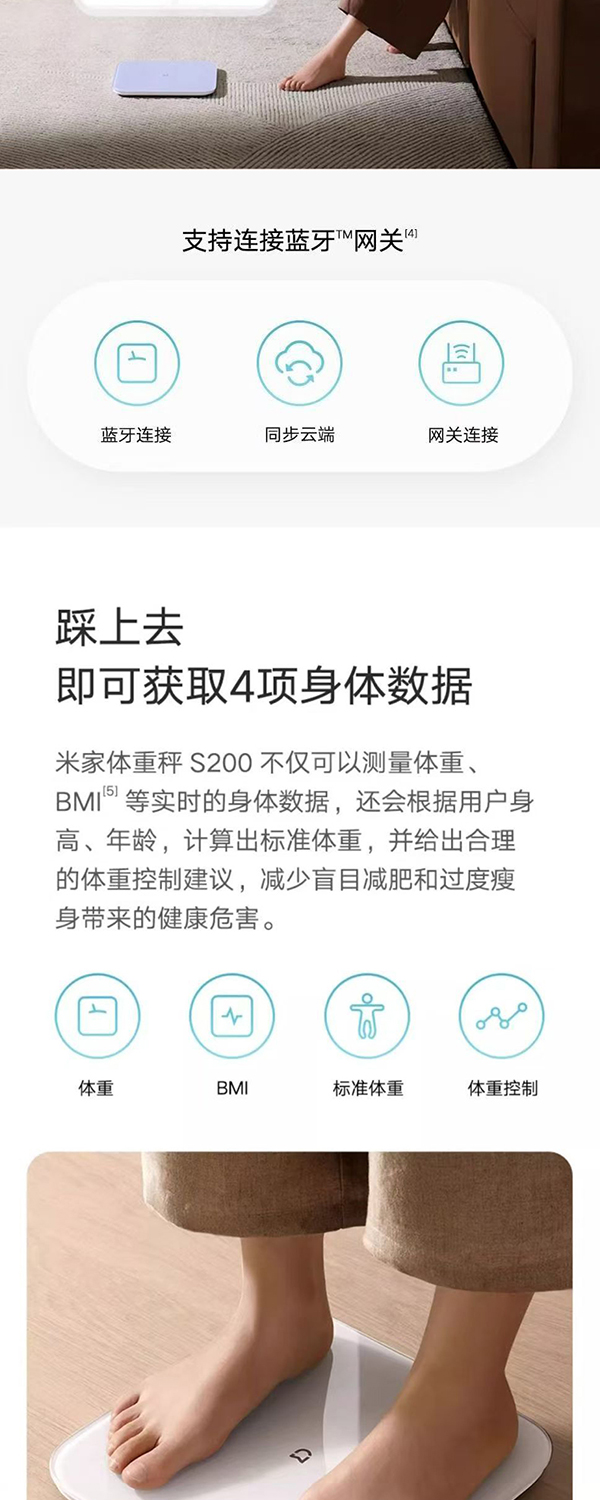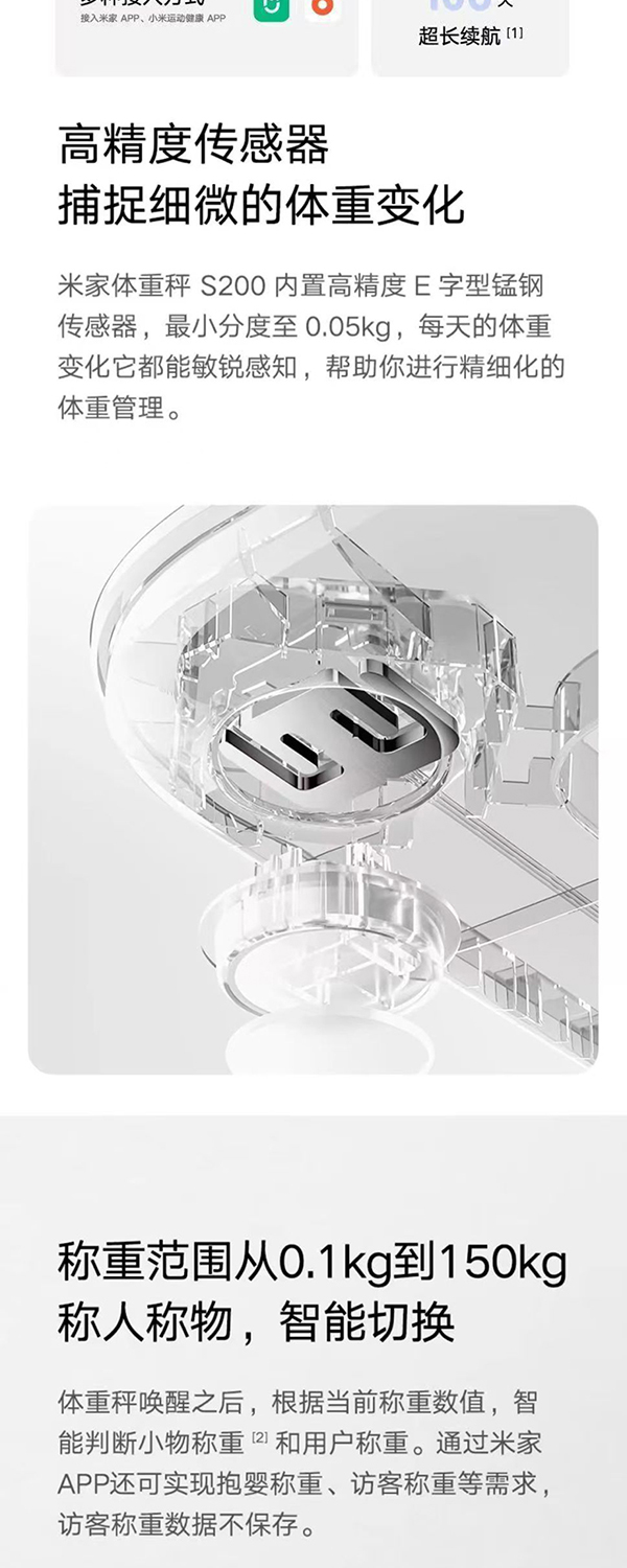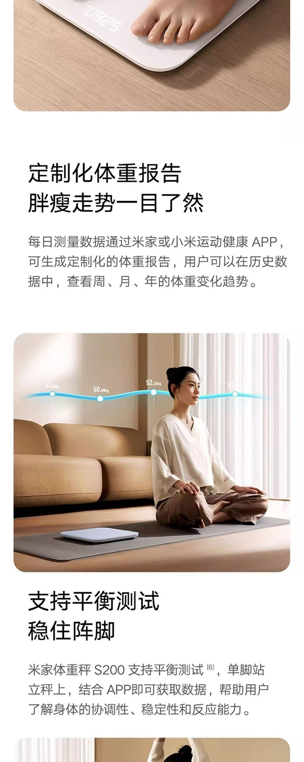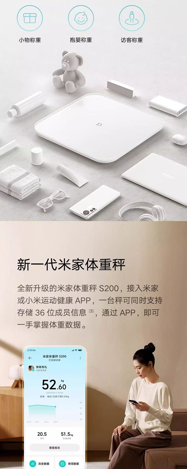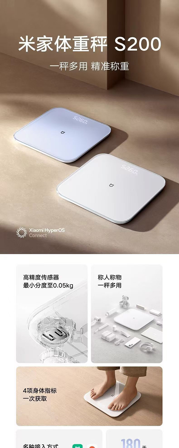 小米体重秤S200家用智能电子秤精准健康米家体重秤减肥宿舍神器