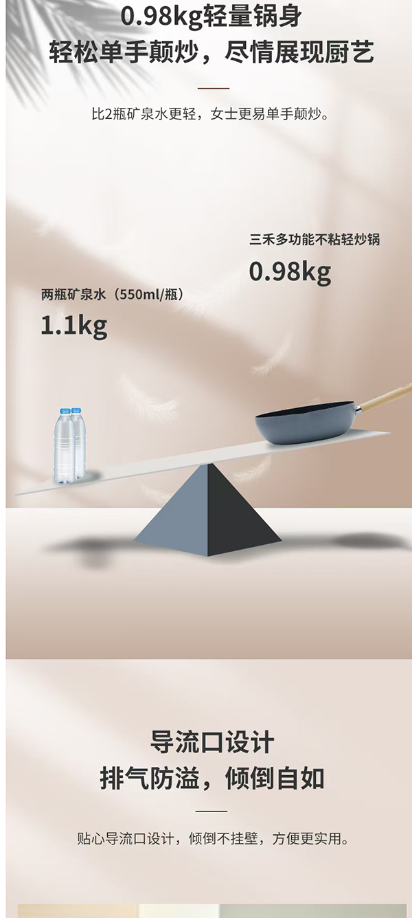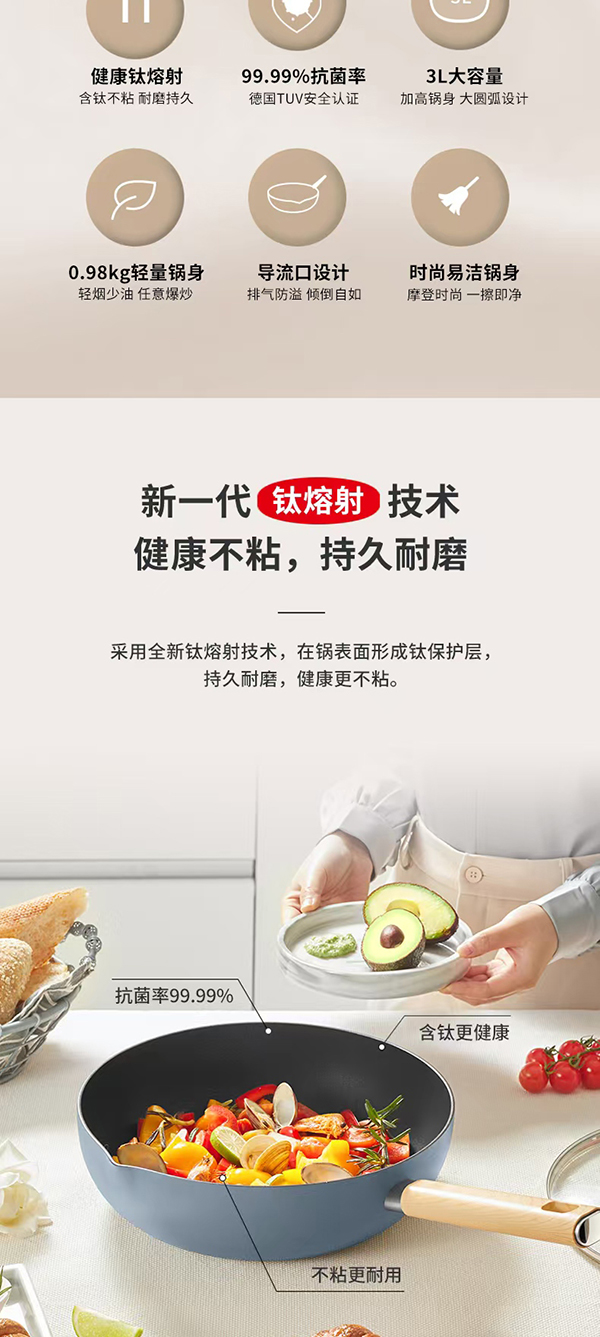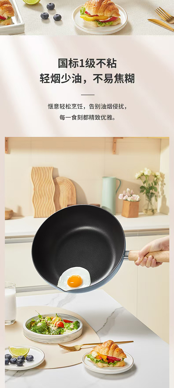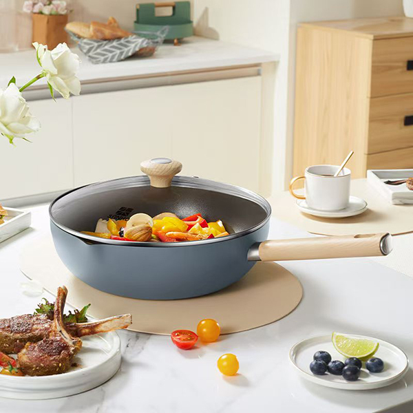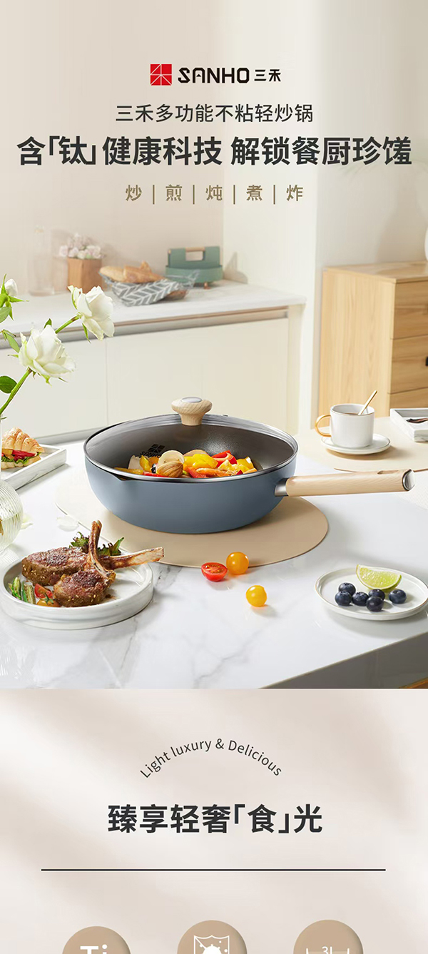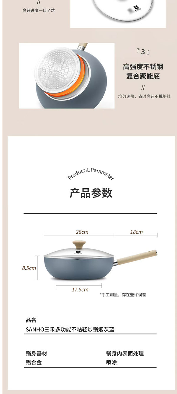 SANHO三禾多功能不粘轻炒锅烟灰蓝28cm