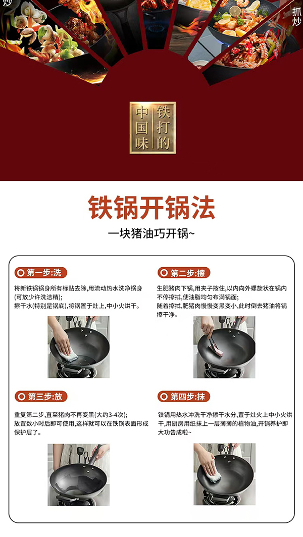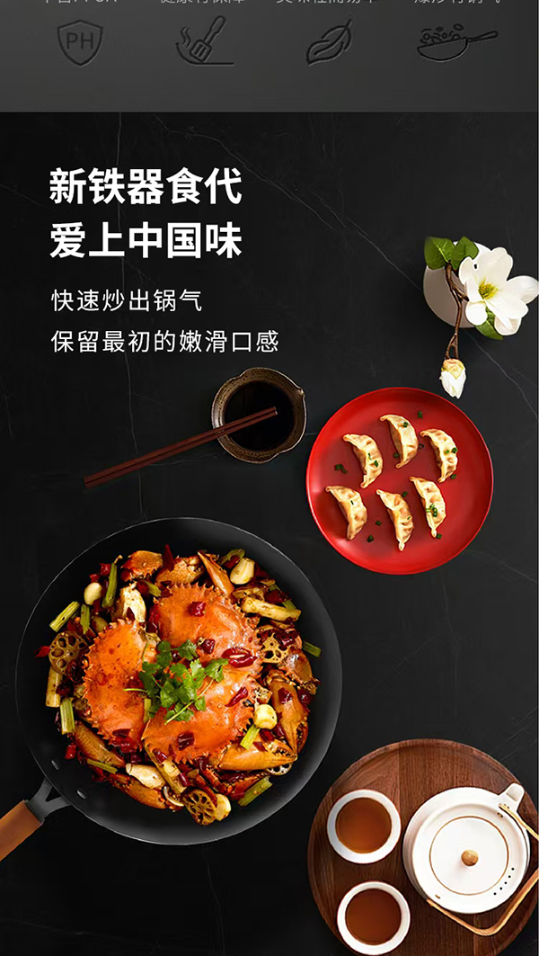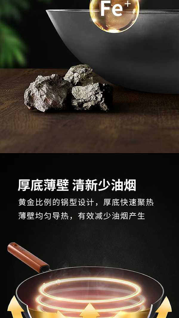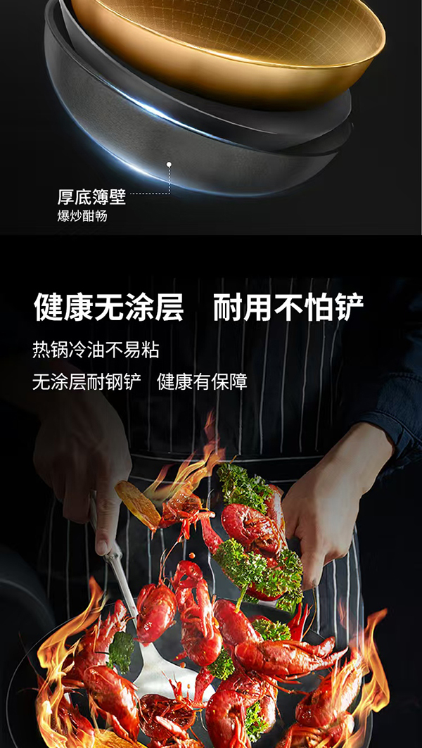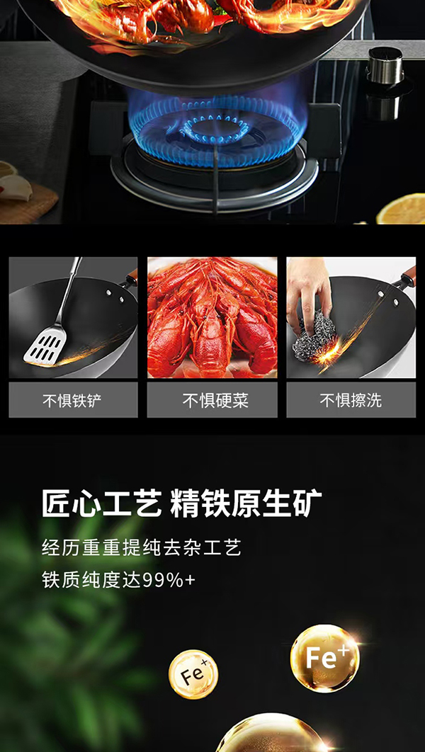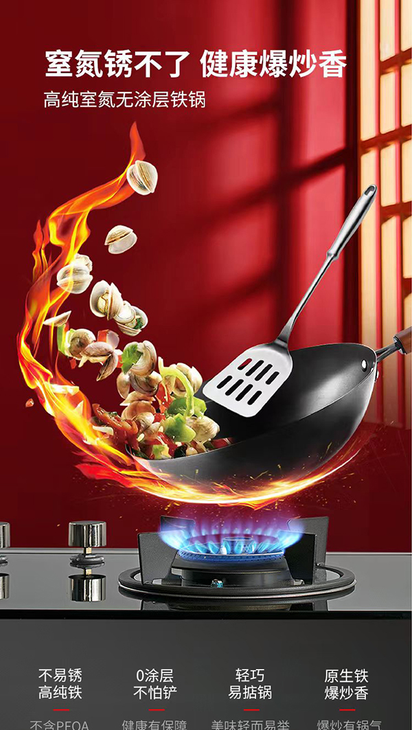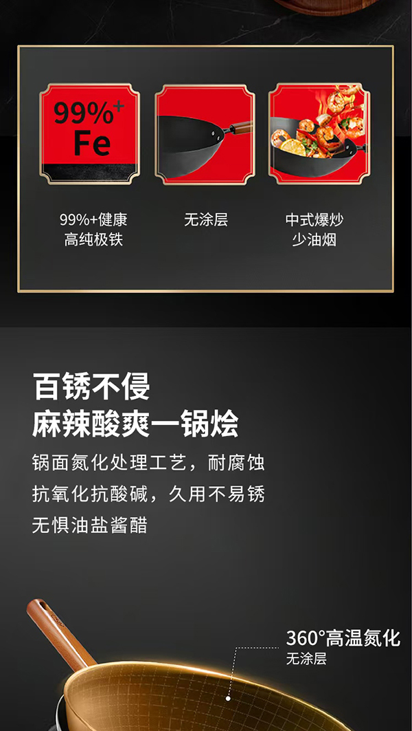 爱仕达轻量高纯窒氮无涂层铁锅炒锅32cm