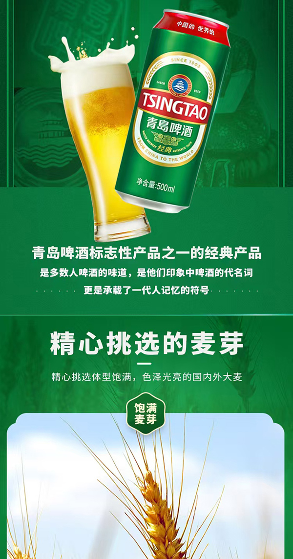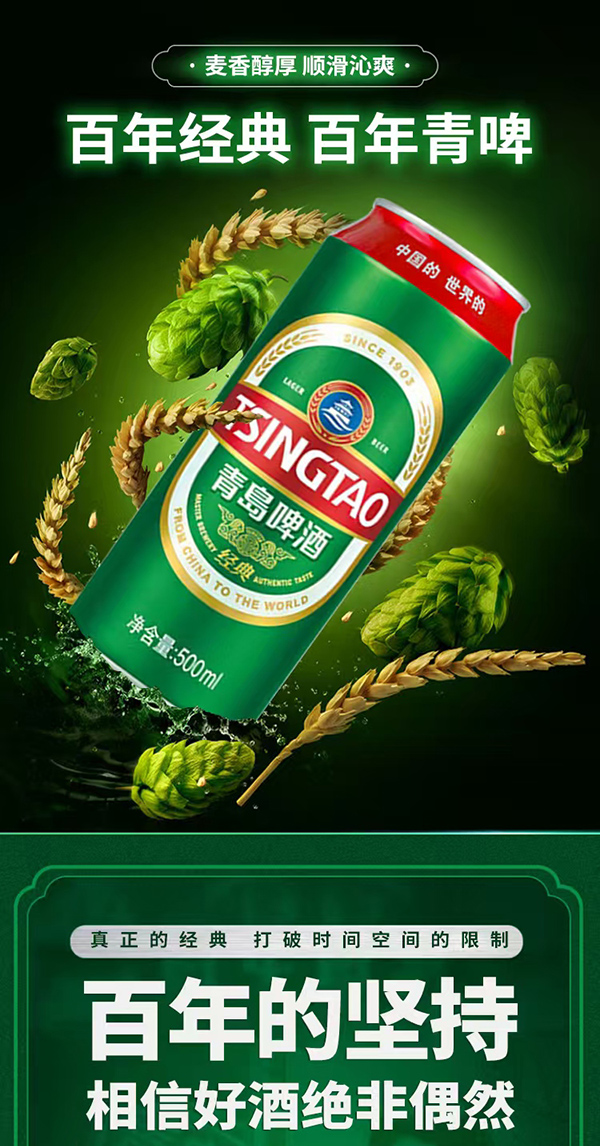 青岛啤酒经典麦汁10度500ml*12听/箱