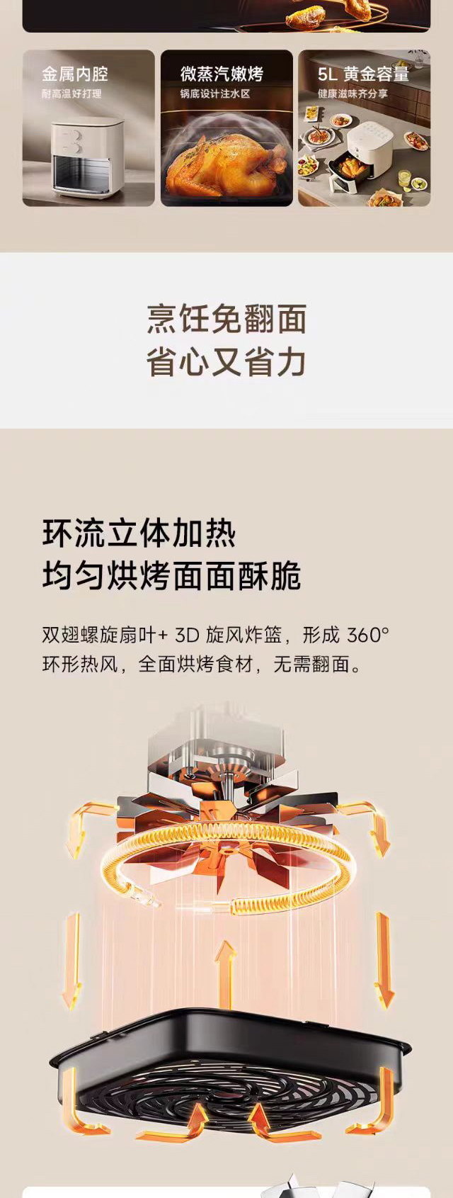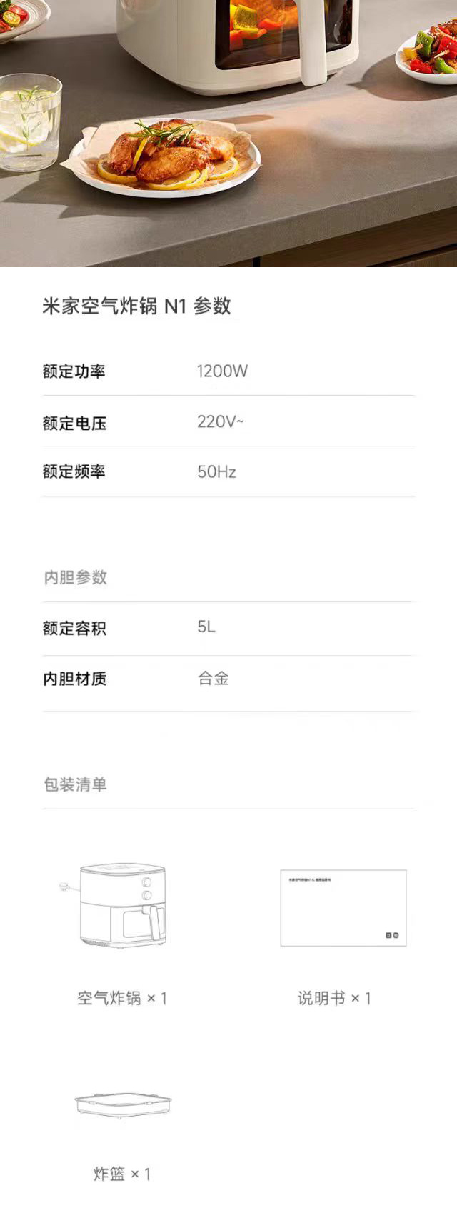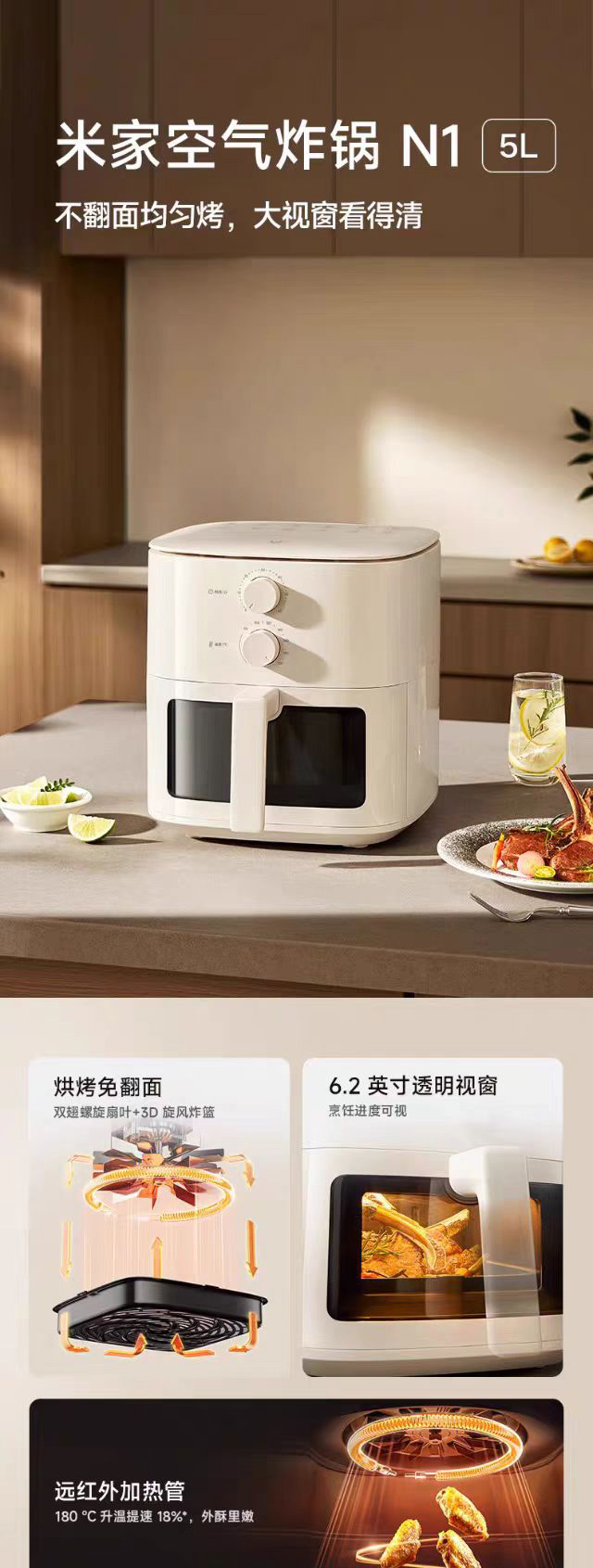 小米空气炸锅N1家用可视多功能一体2024新款电烤箱炸锅智能大容量