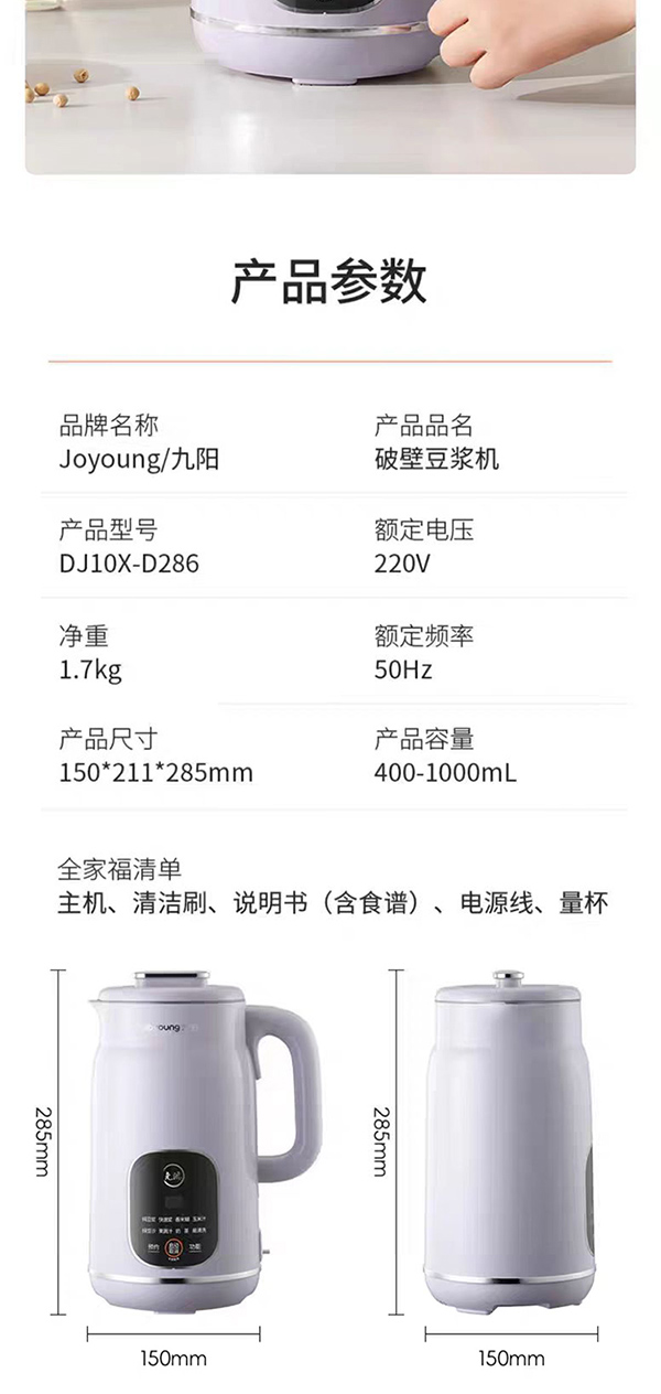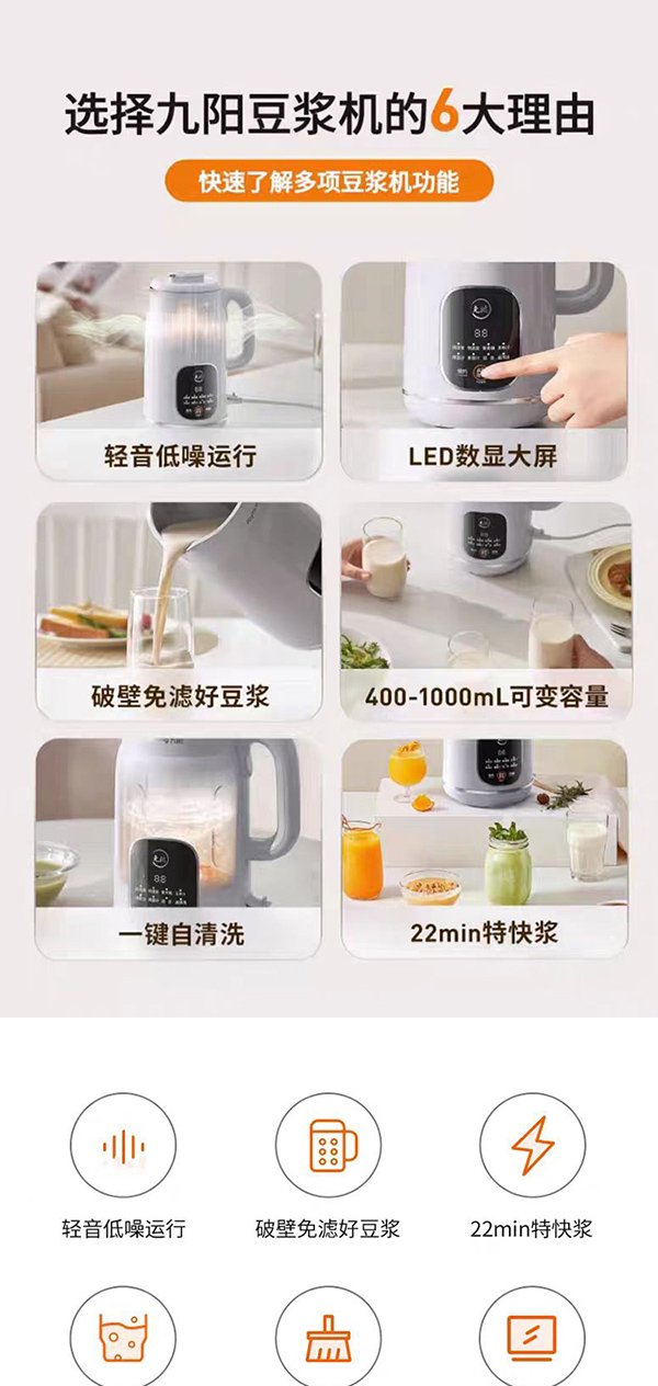 九阳豆浆机家用全自动免煮轻音破壁机