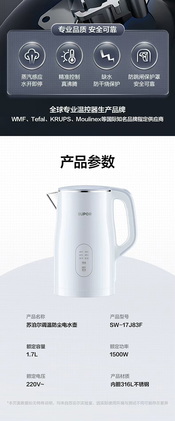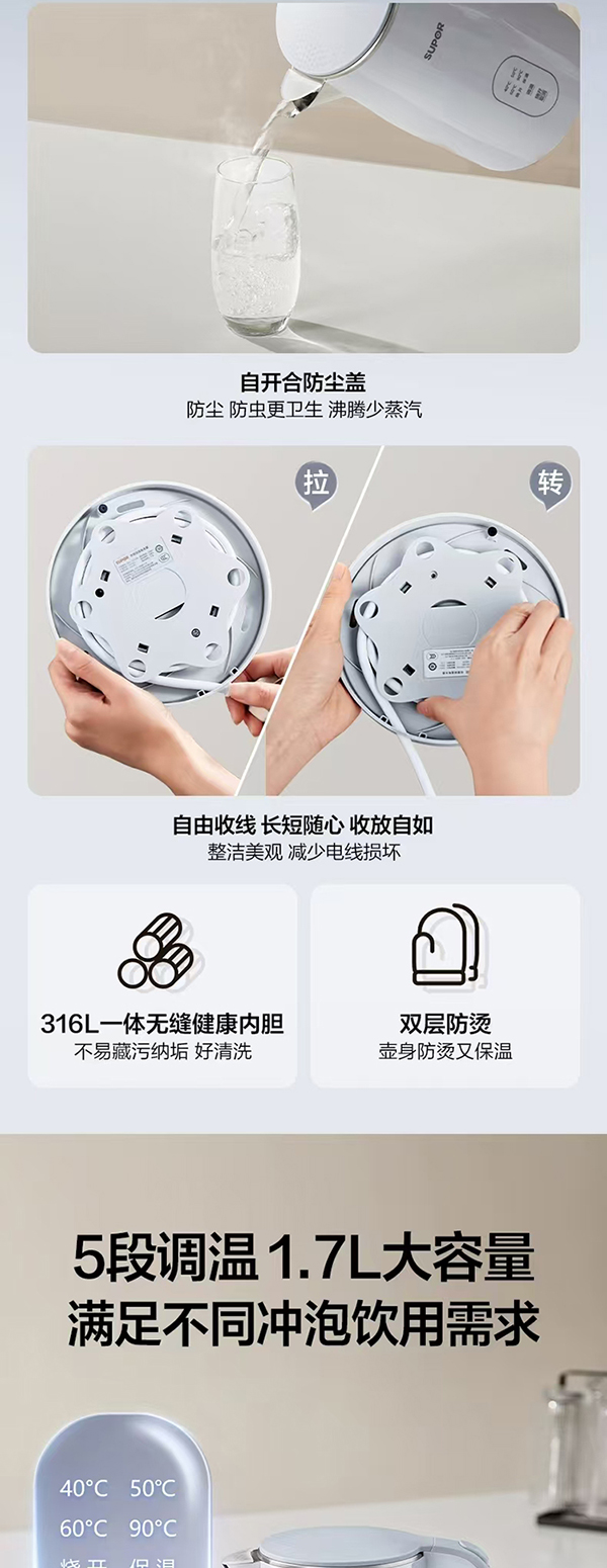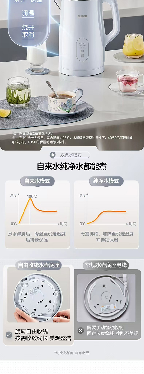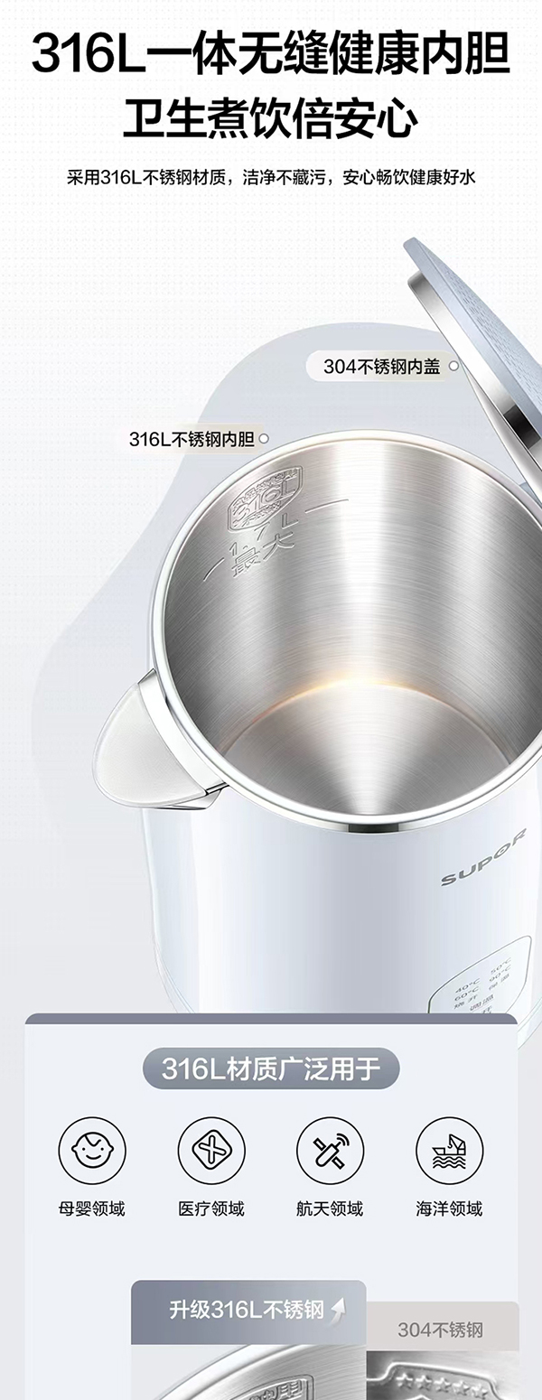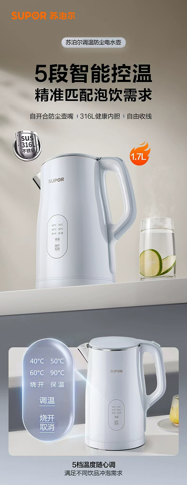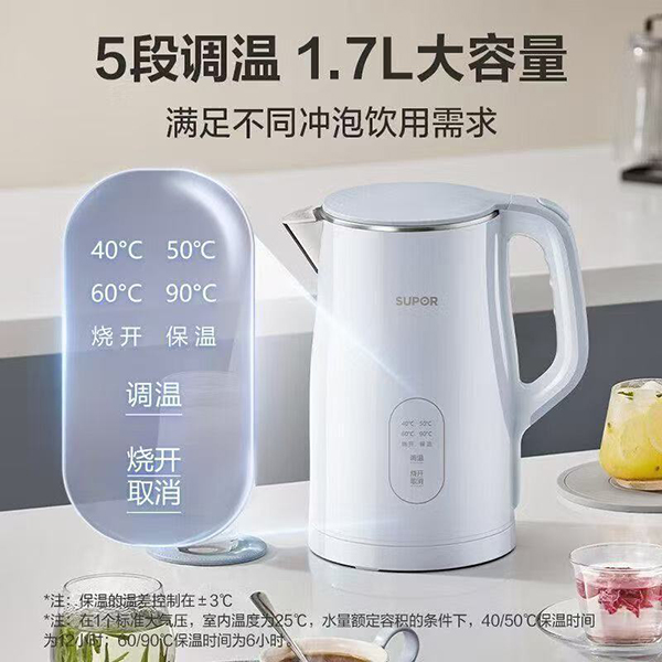 苏泊尔电热水壶家用大容量3'6L不锈钢内胆智能控温大容量烧水壶