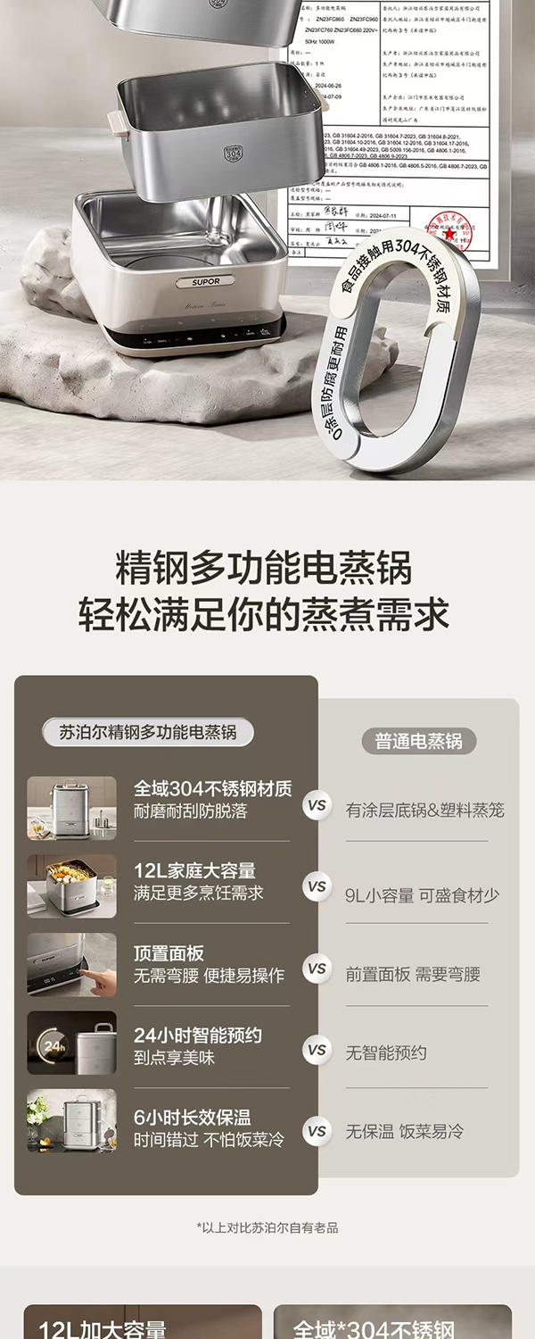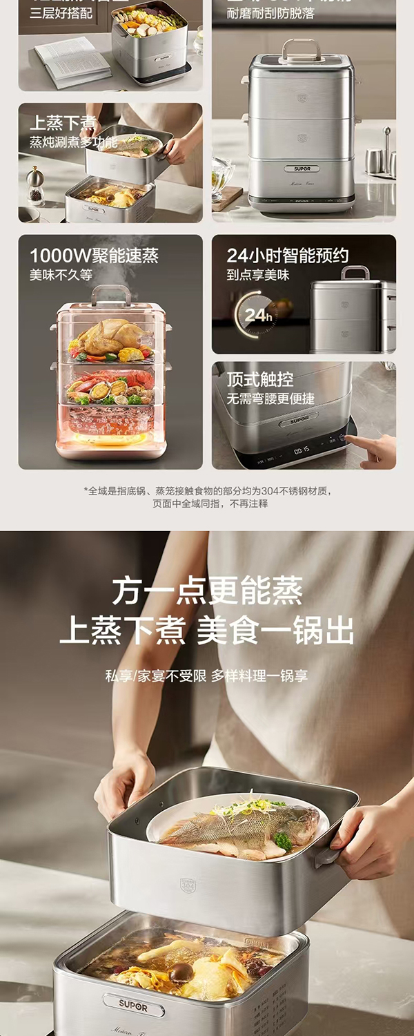 苏泊尔电蒸锅家用三层炖素 苏泊尔一体早餐机蒸笼