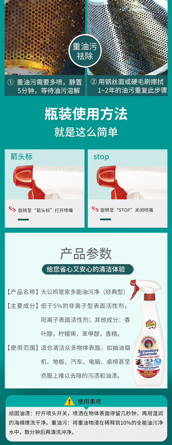 意大利进口大公鸡管家多功能去油污喷雾600ml
