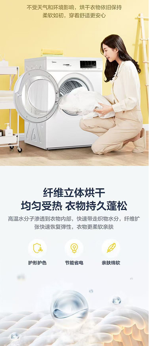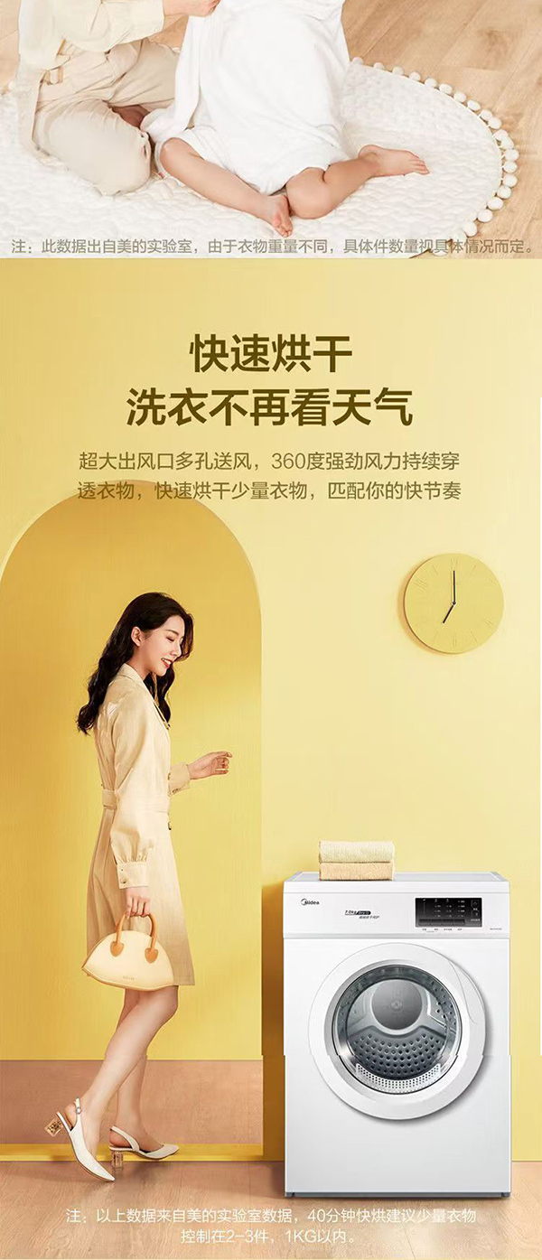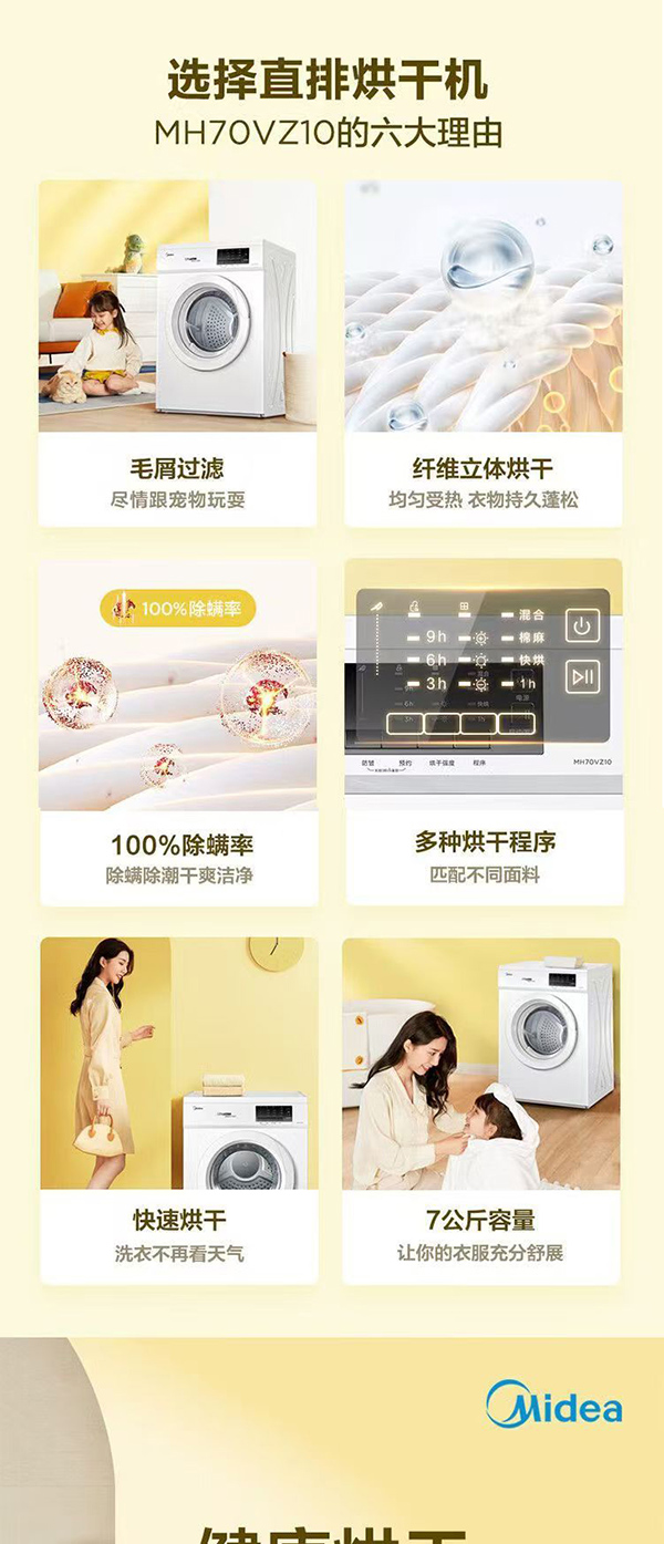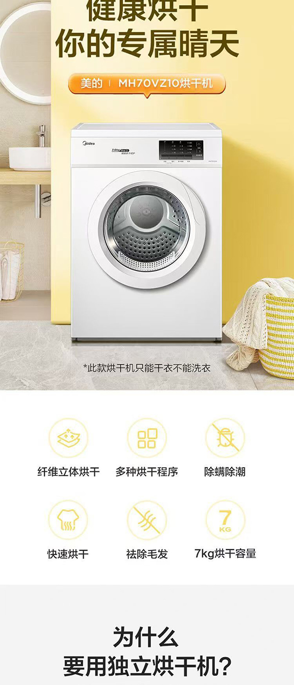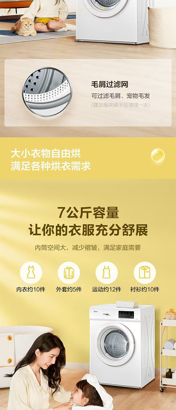 美的7kg全自动迷你小型家用除菌滚筒烘干机MH70VZ10