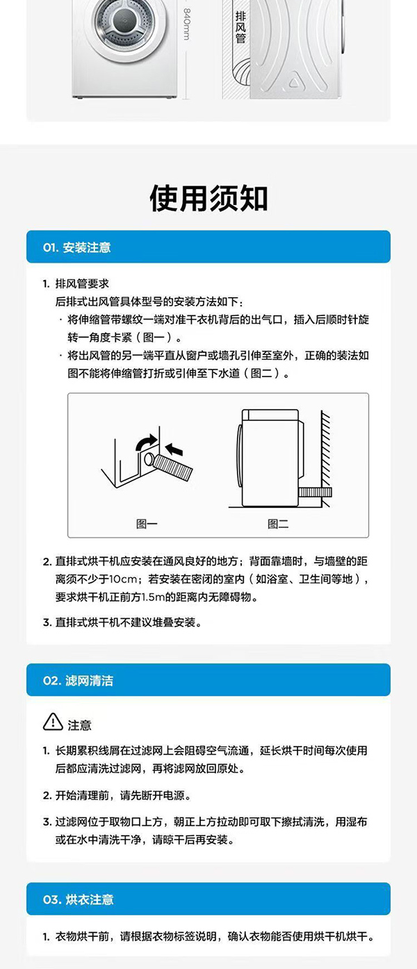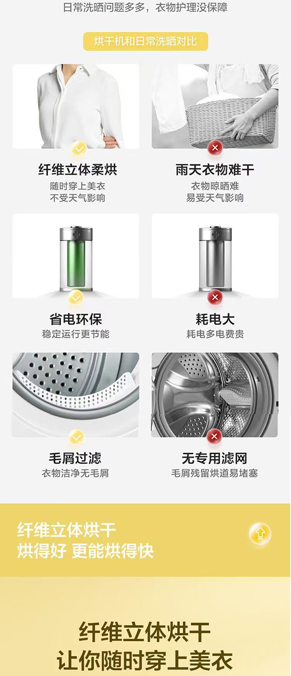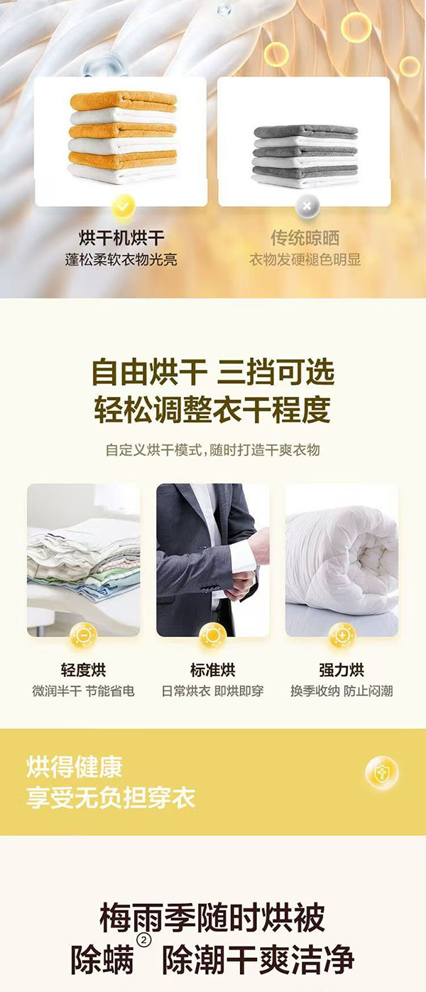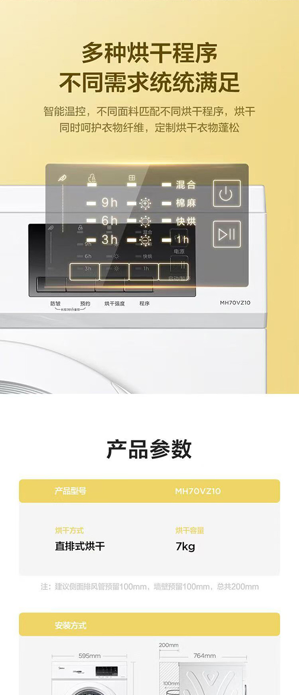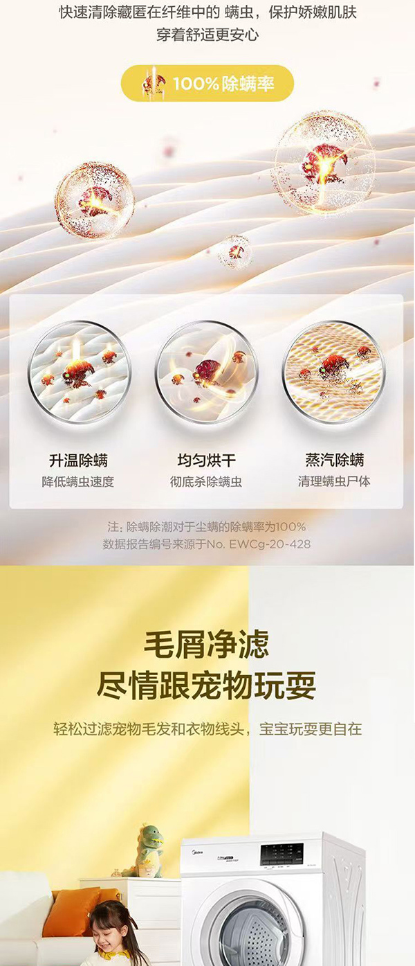 美的7kg全自动迷你小型家用除菌滚筒烘干机MH70VZ10