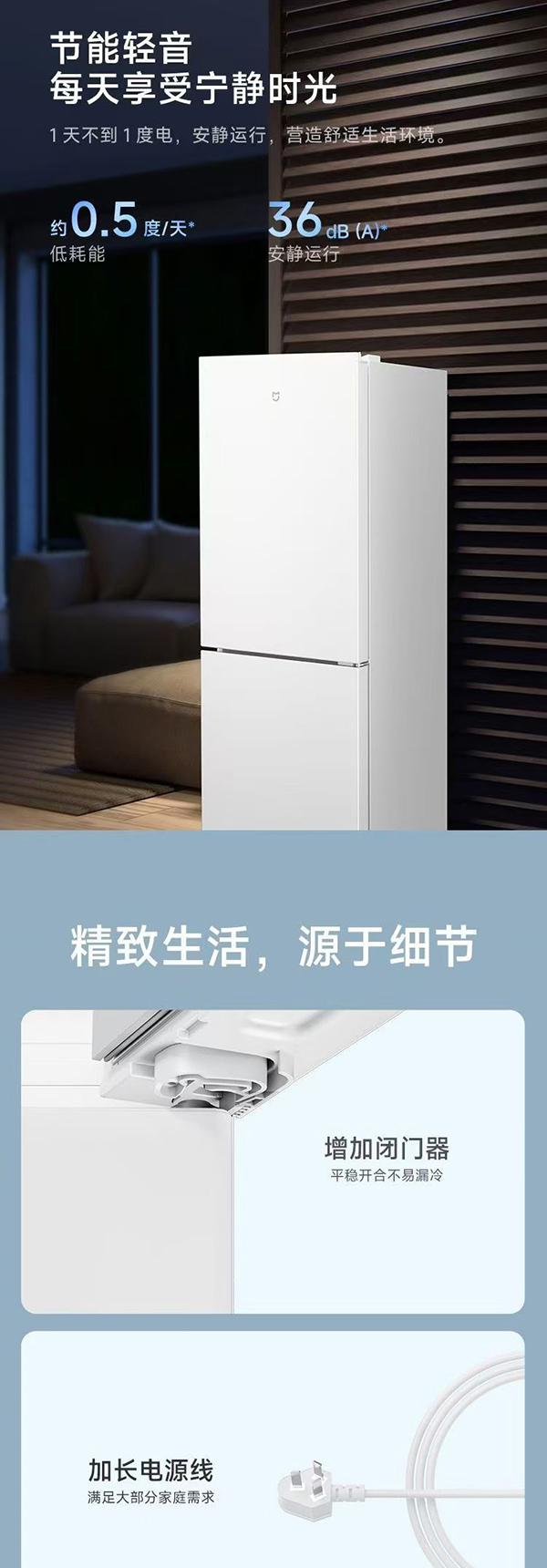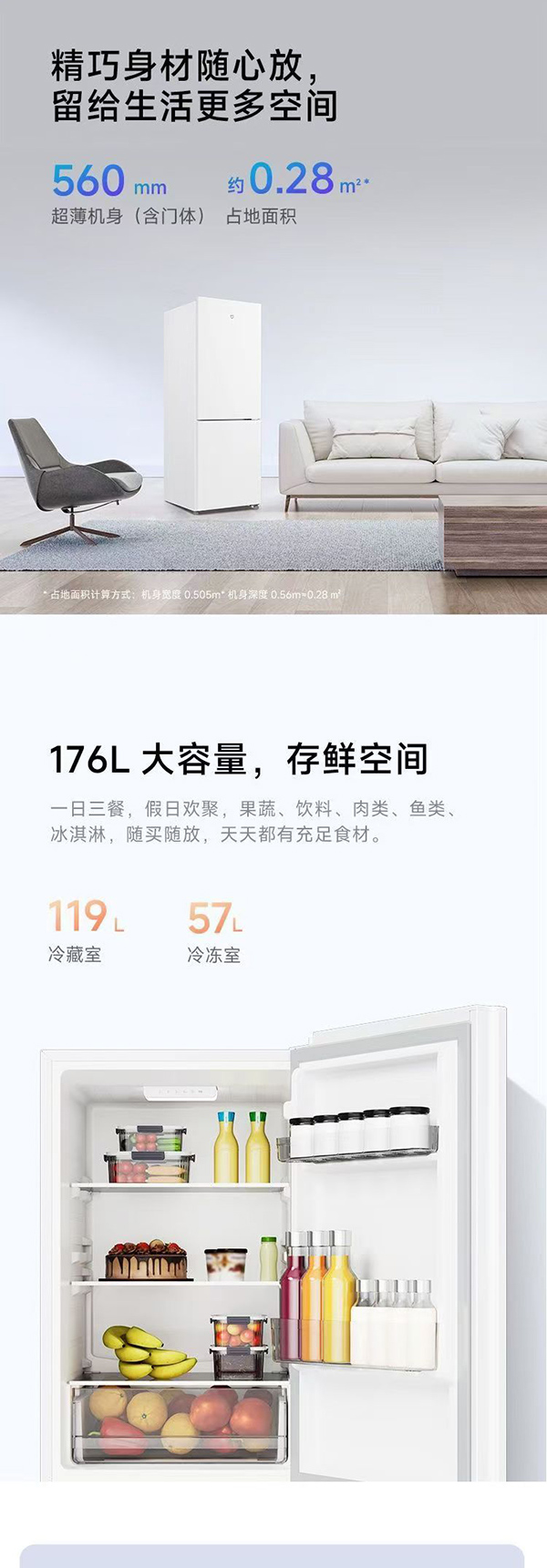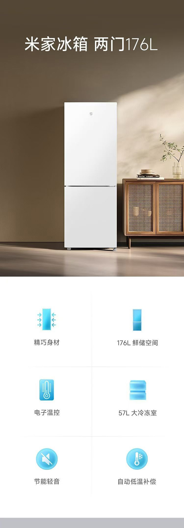 小米米家冰箱176升双门节能冷冻冷藏冰箱租房宿舍