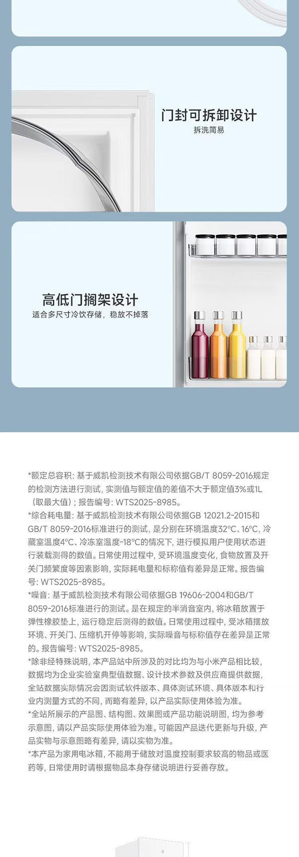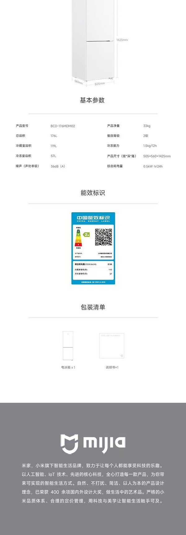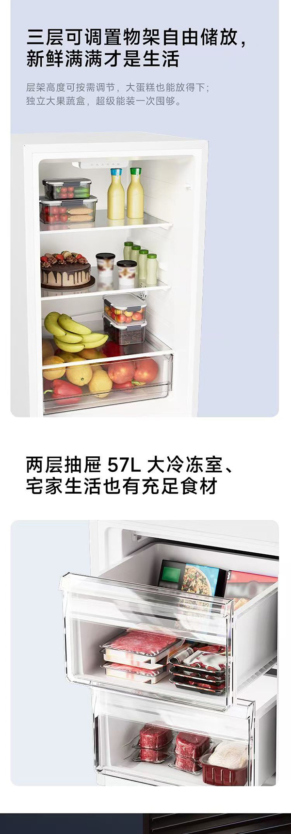 小米米家冰箱176升双门节能冷冻冷藏冰箱租房宿舍