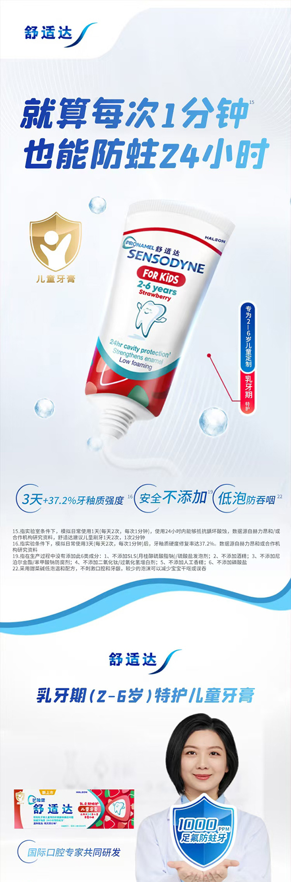 舒适达护釉健乳牙期特护儿童牙膏65g(草莓口味)