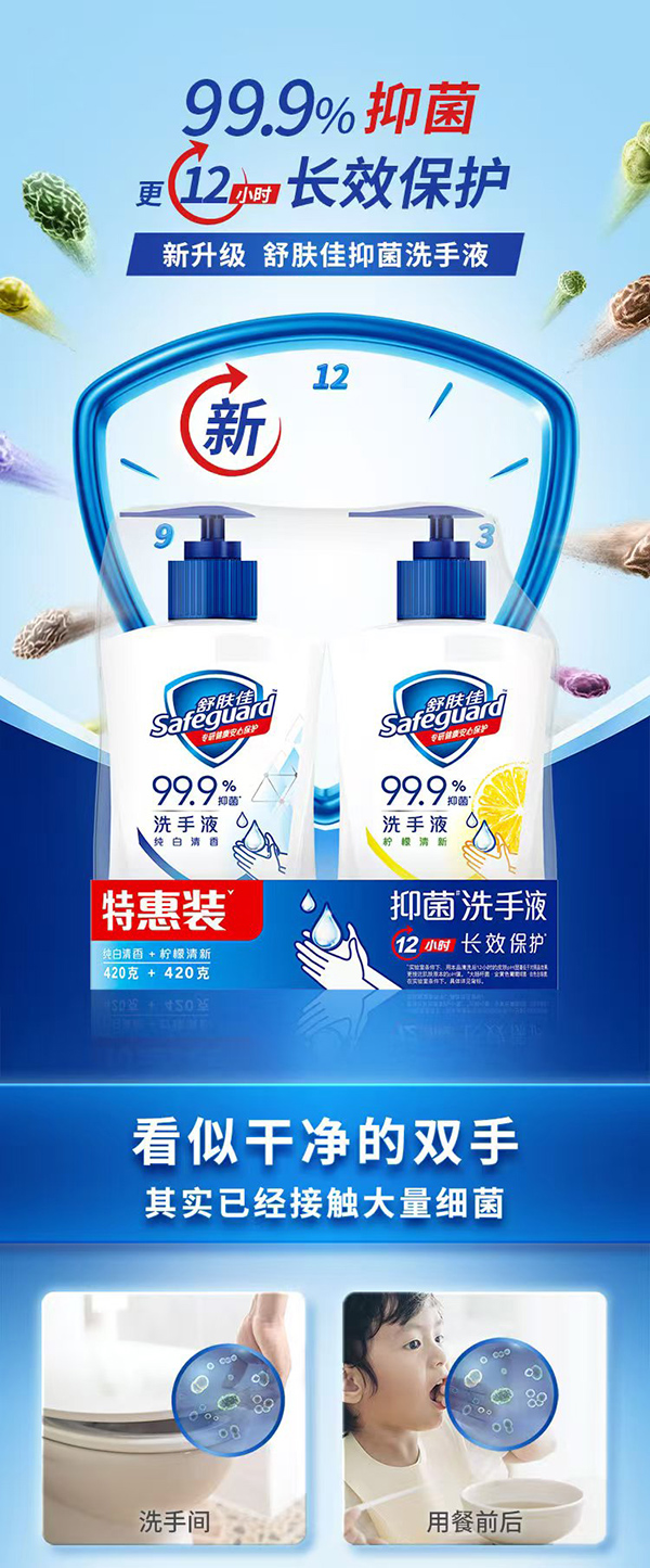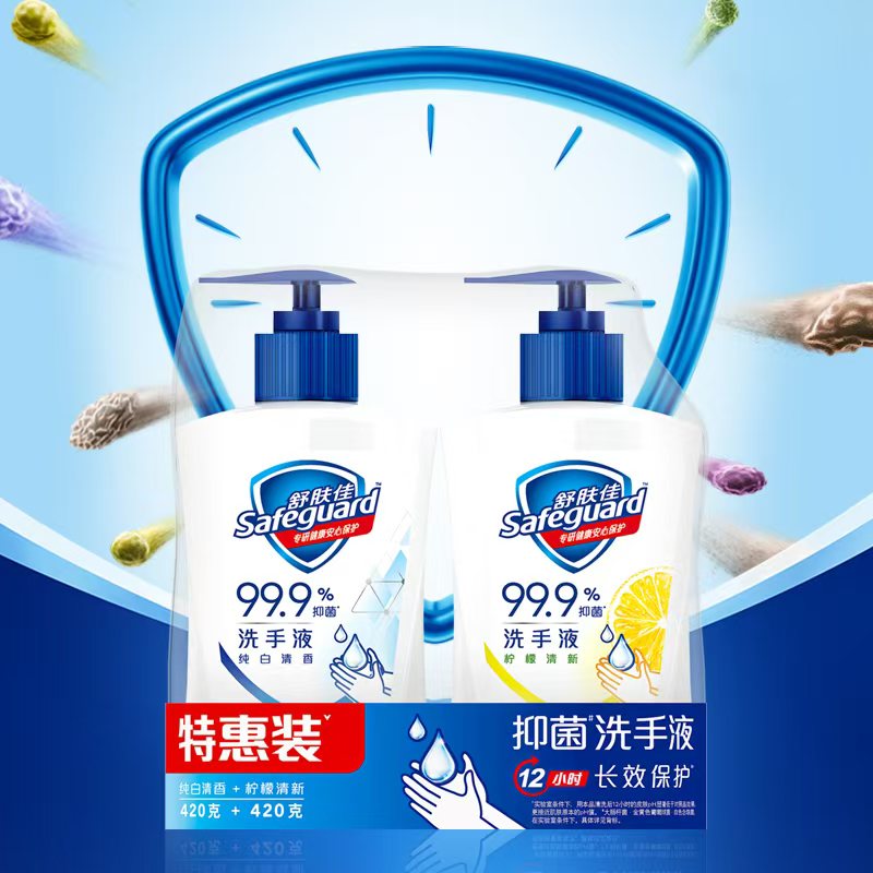 舒肤佳纯白+柠檬抑菌洗手液420g+420g