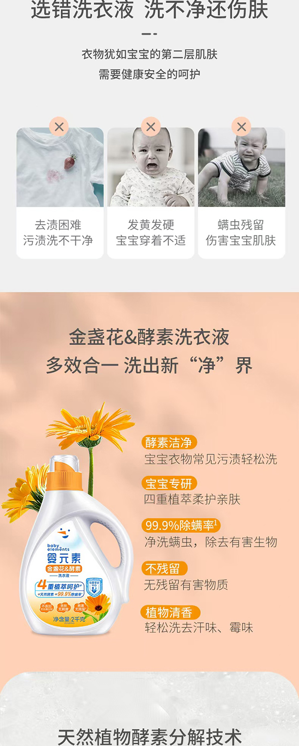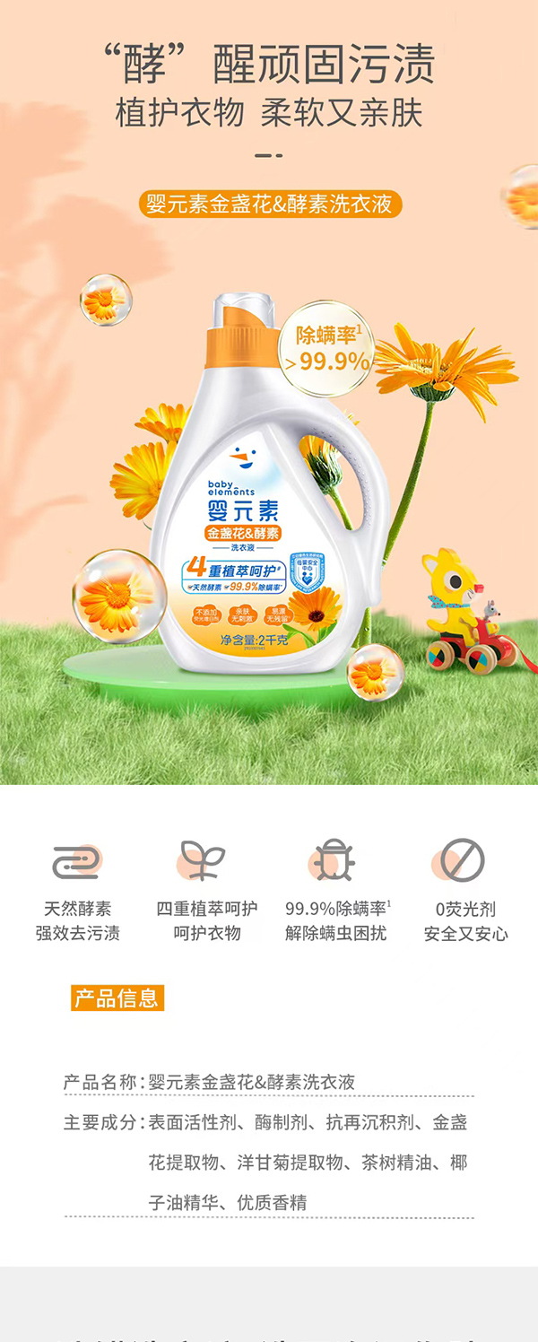 立白婴元素金盏花酵素洗衣液8kg(2kg/瓶*4)
