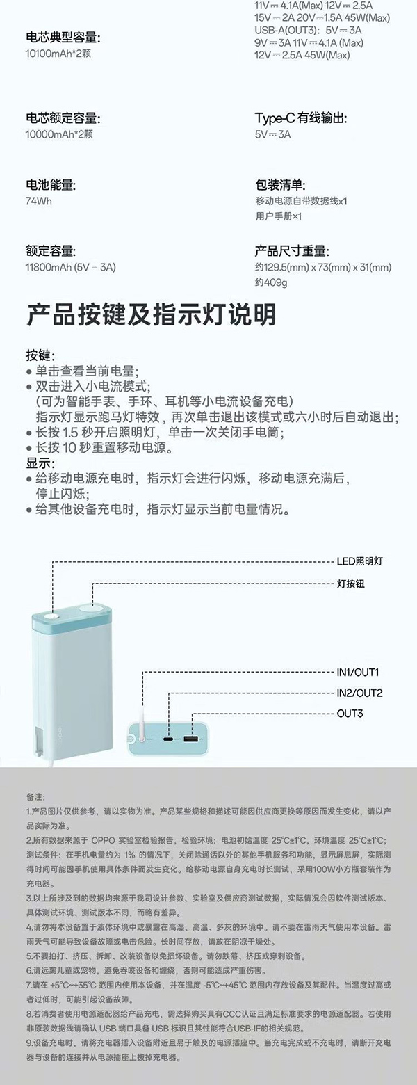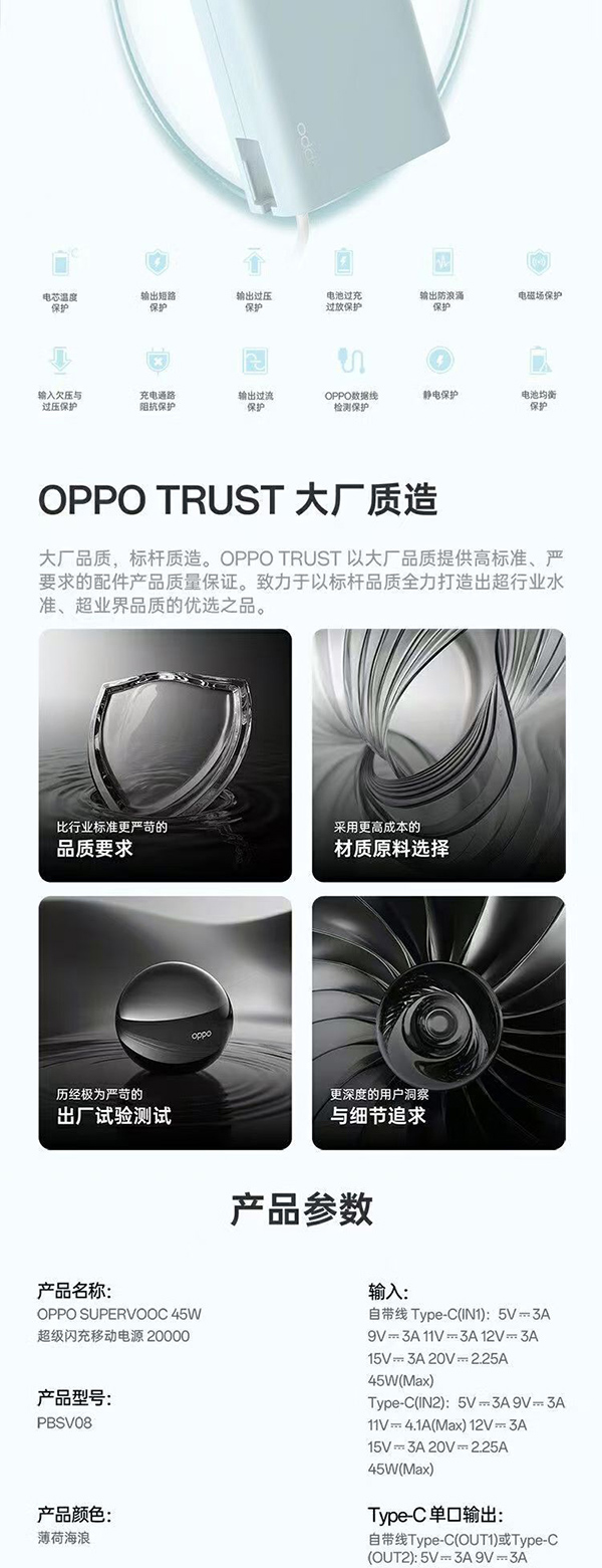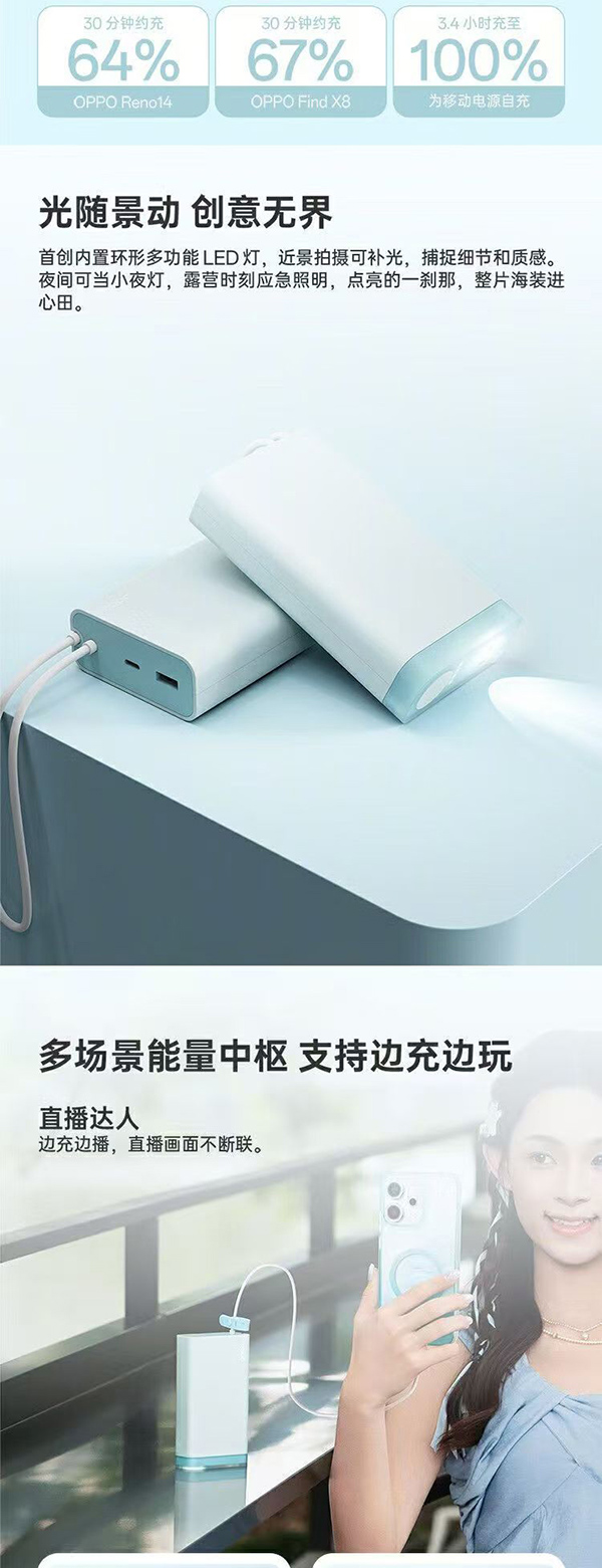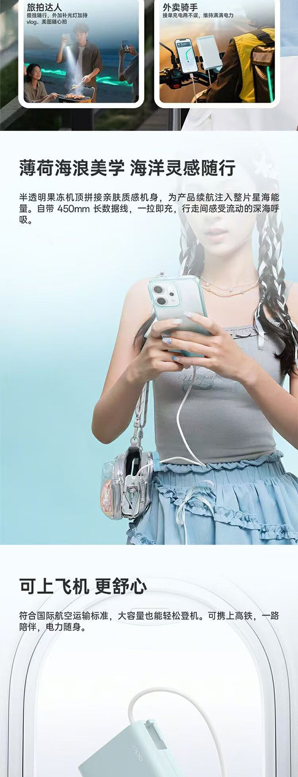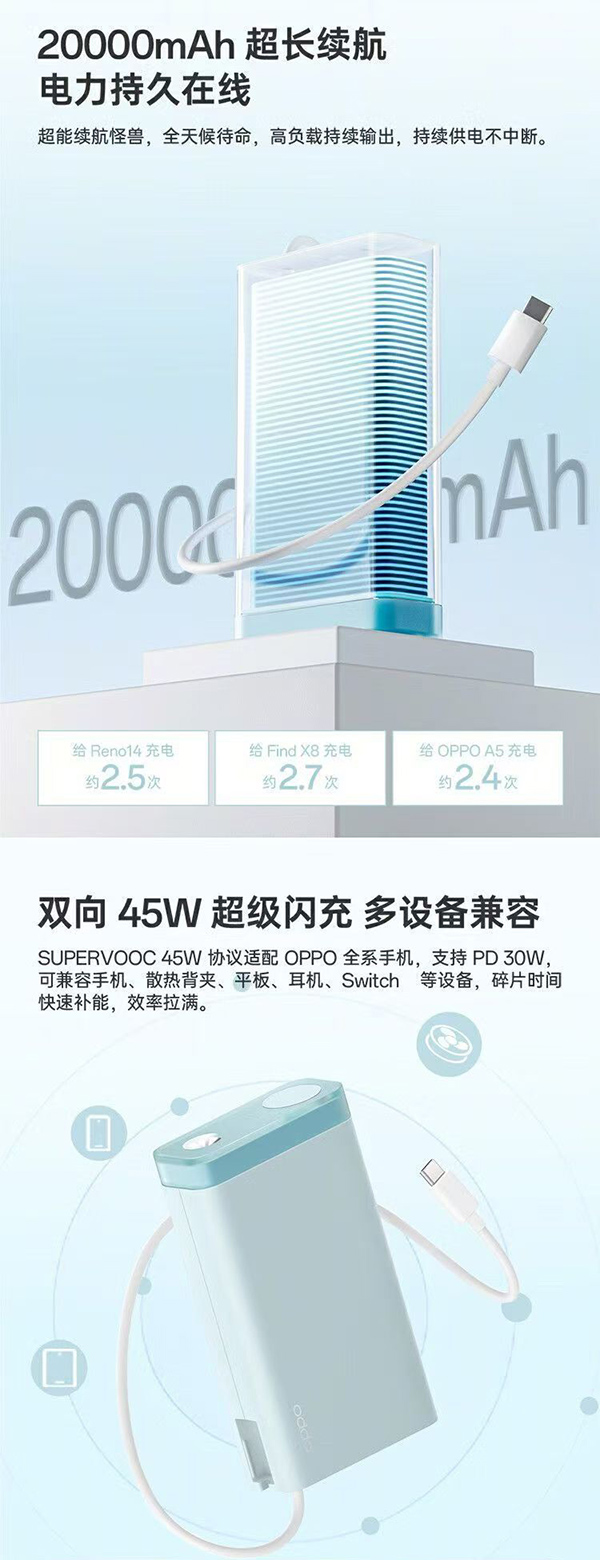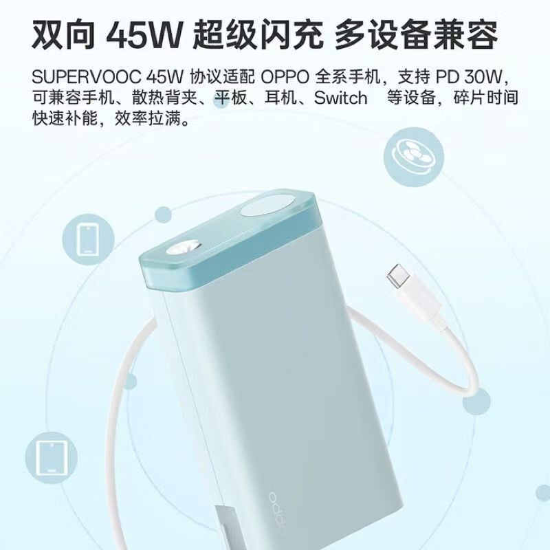 OPPO 45W超级品牌夏清仓闪充移动电源20000mAh带线充电宝