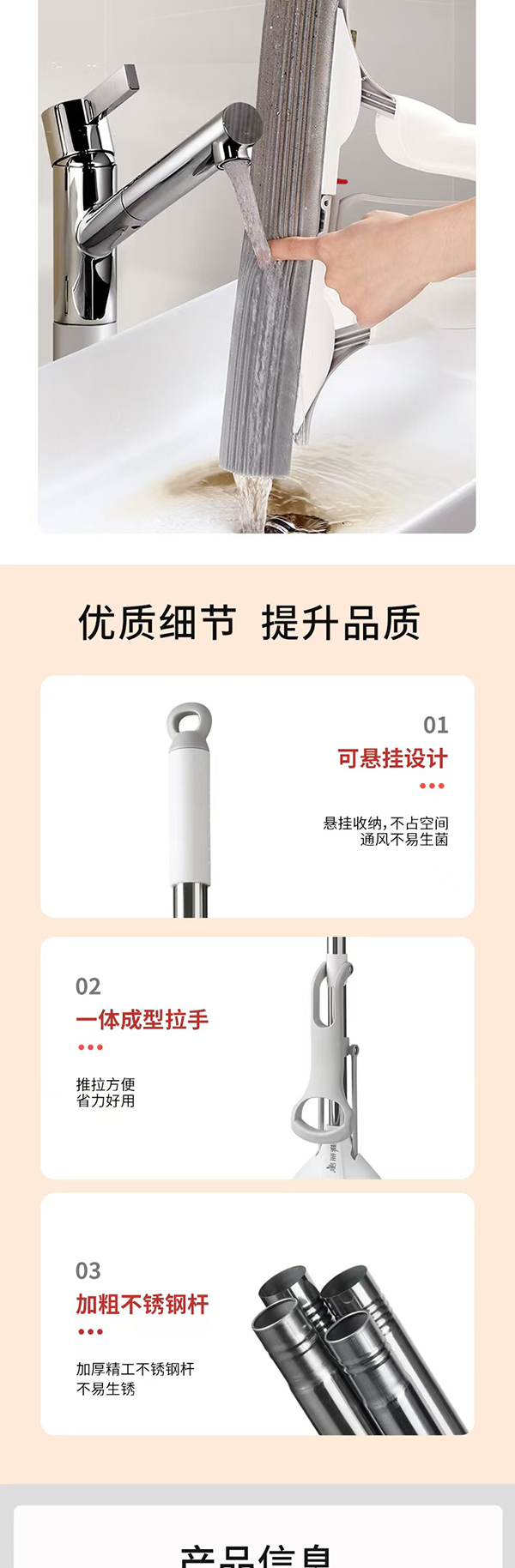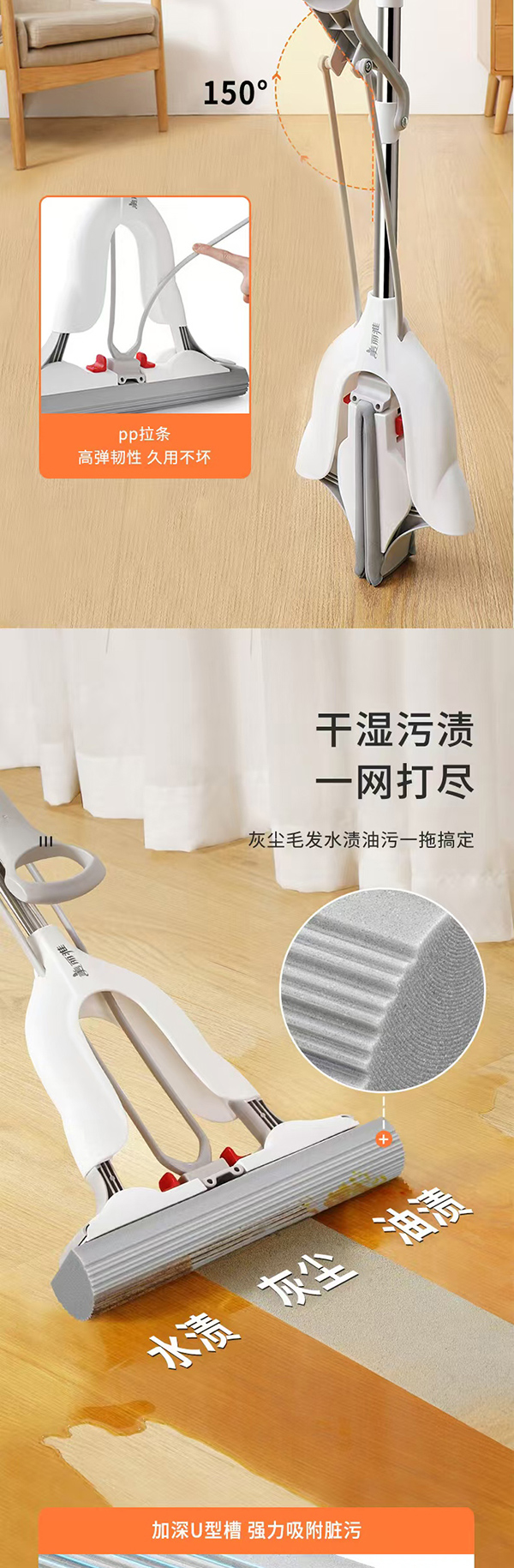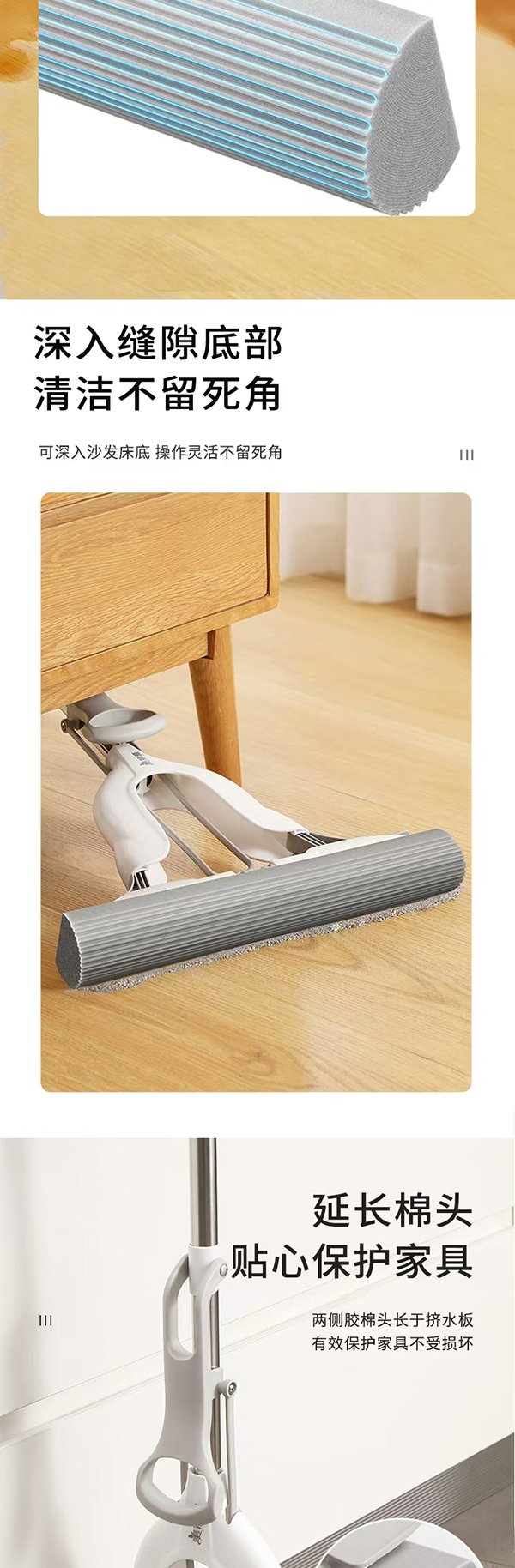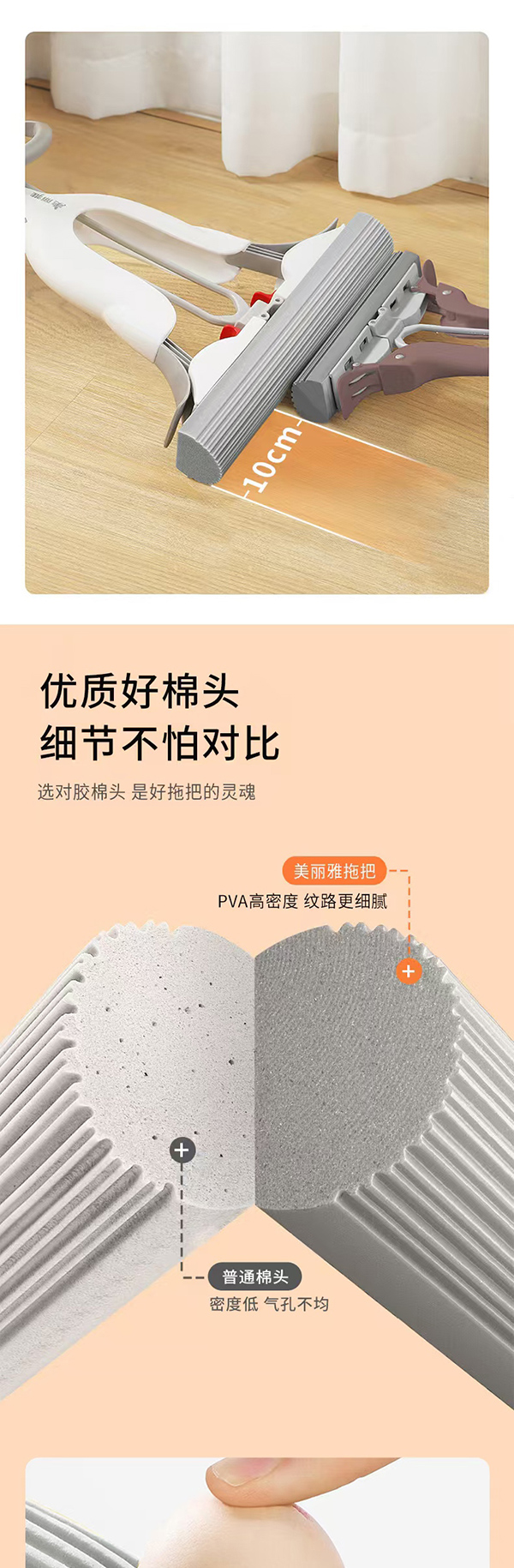 美丽雅轻松拆对折胶棉拖把34cm(加送棉头)