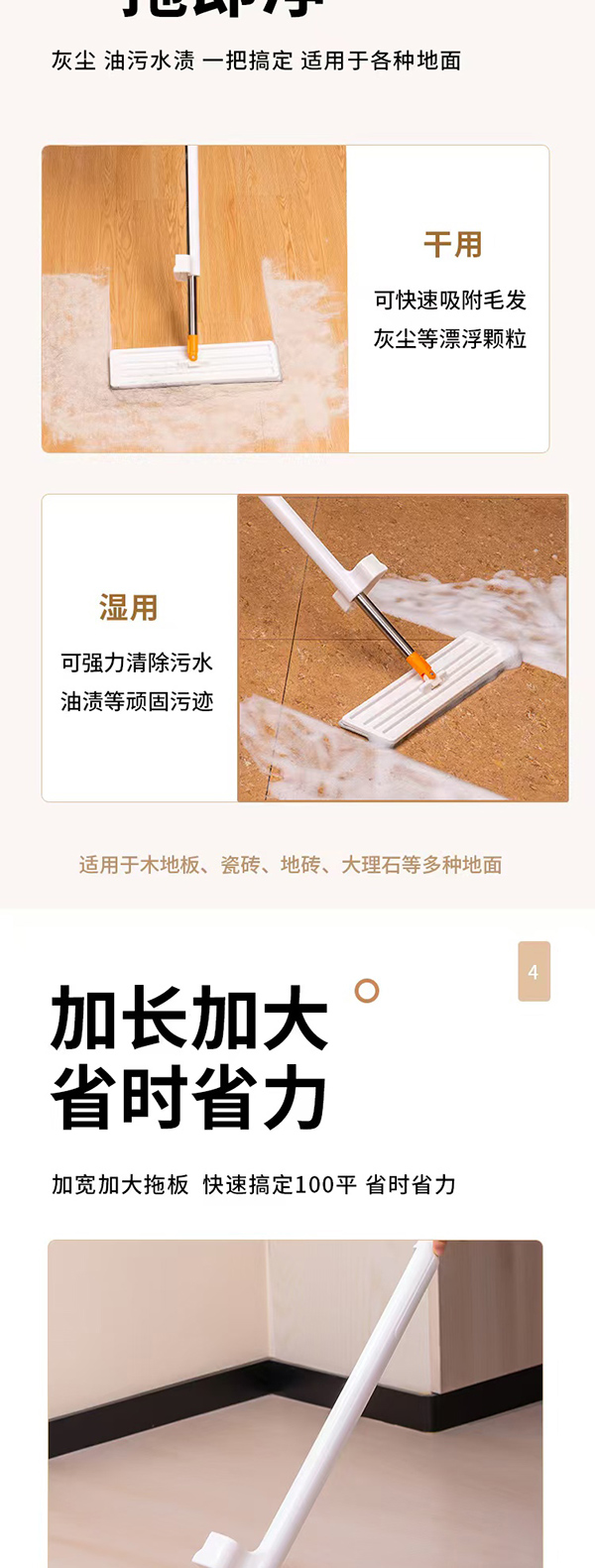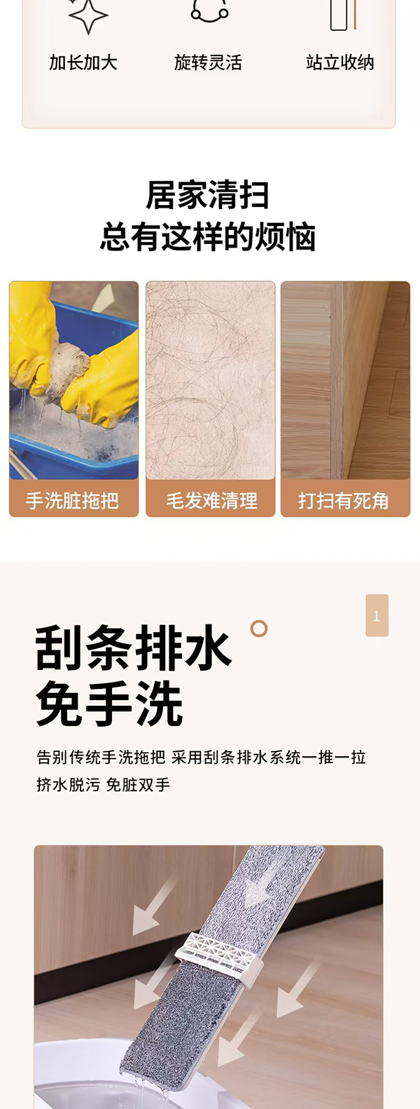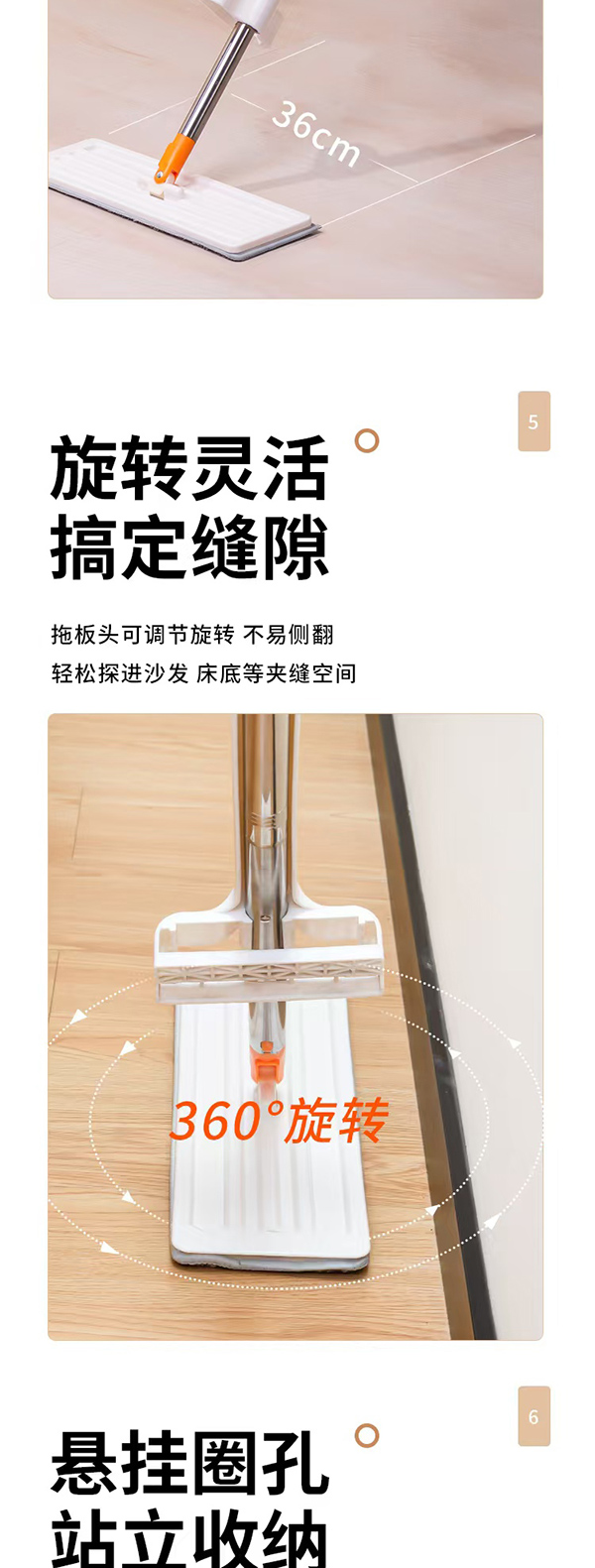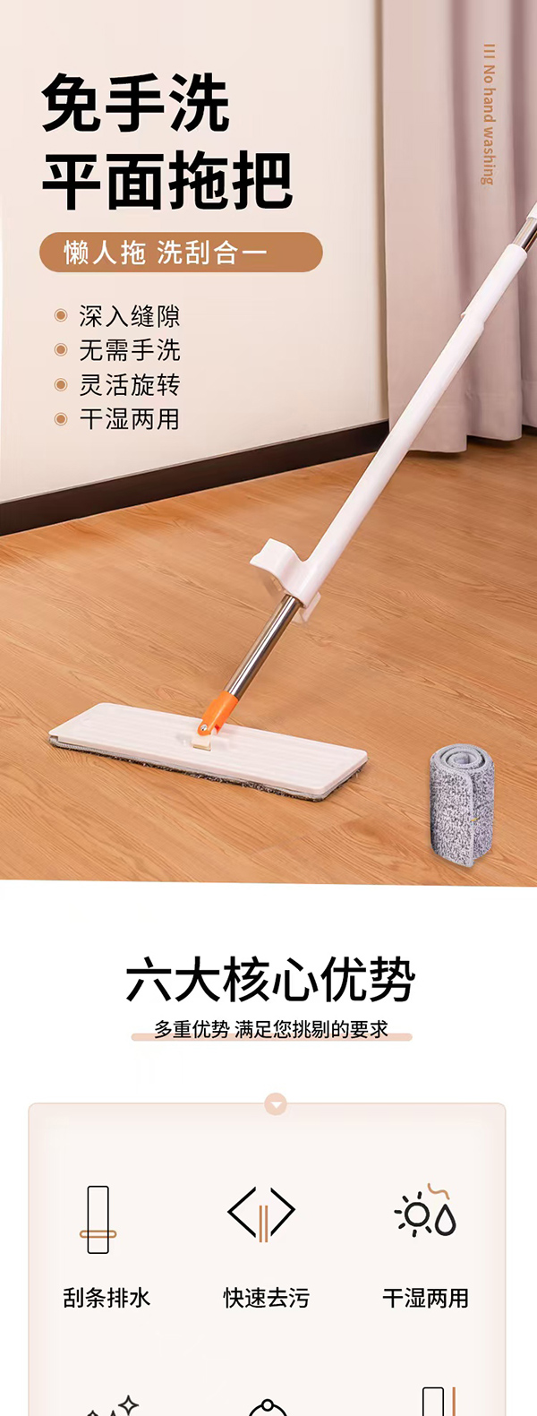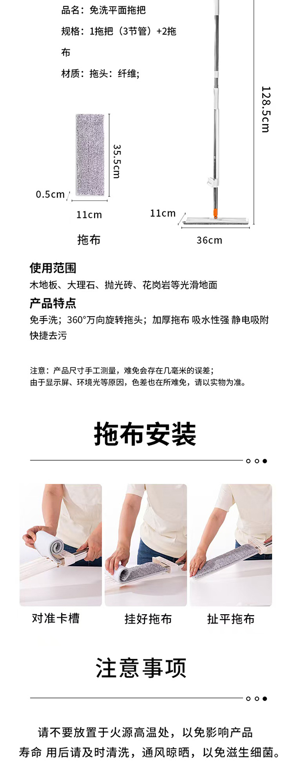 免手洗平板拖把36cm(2片拖把布)