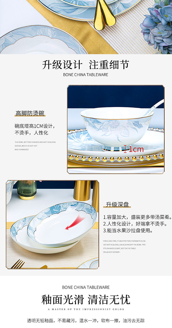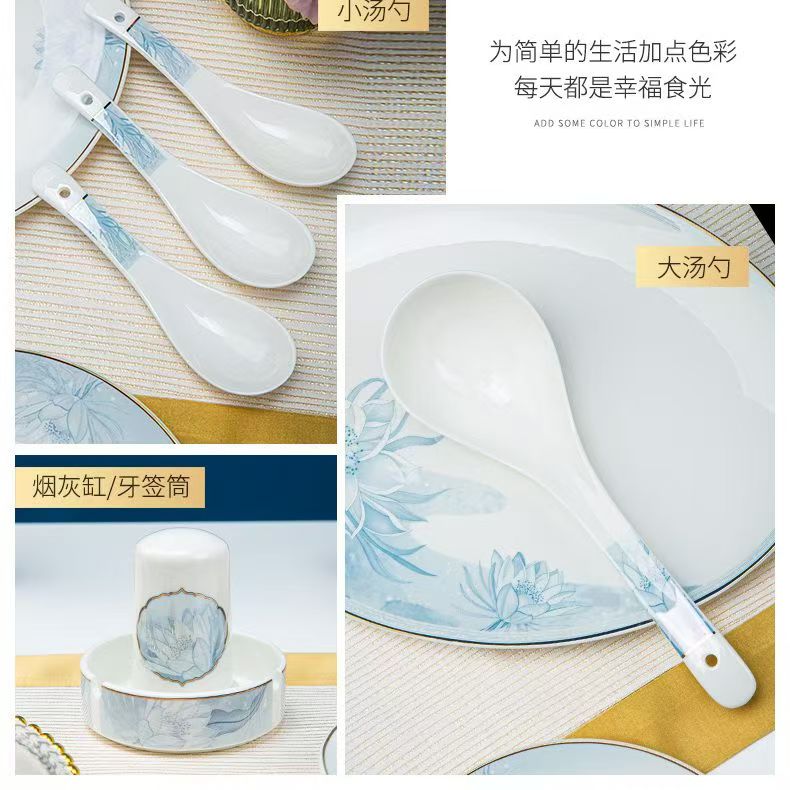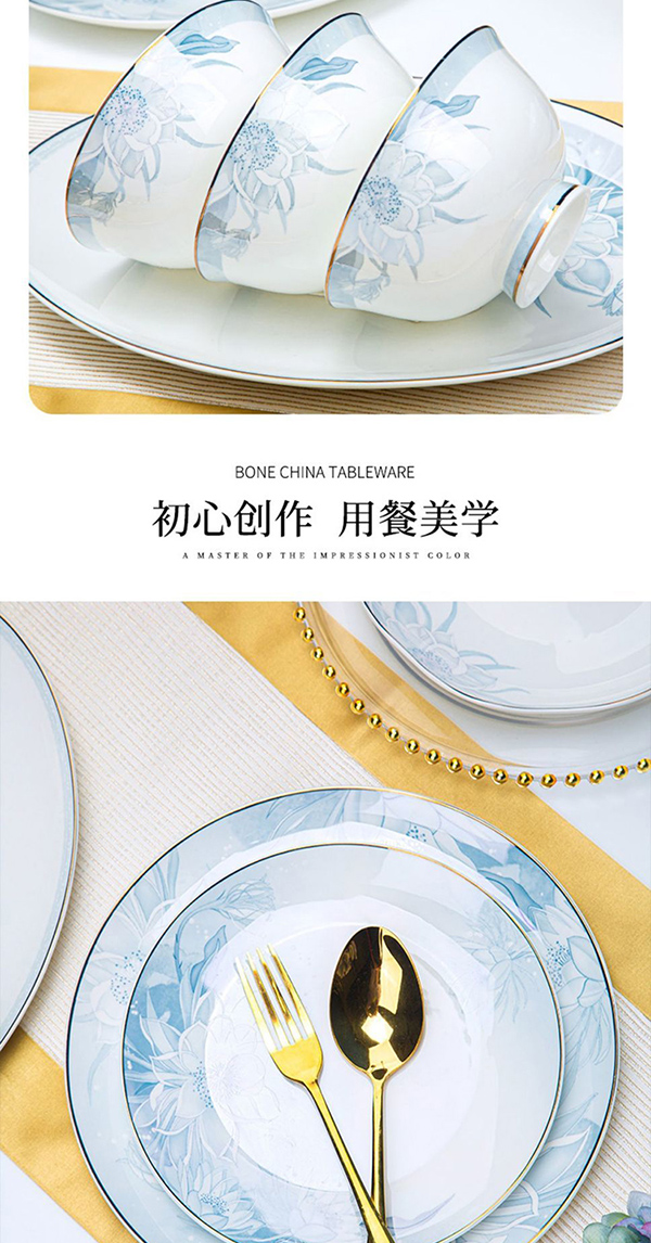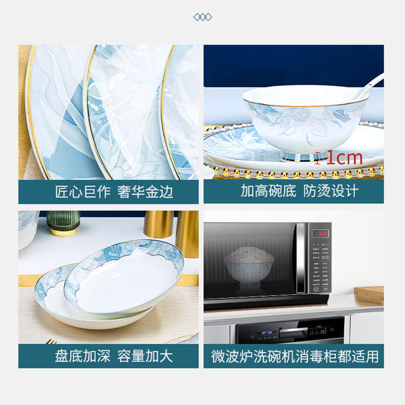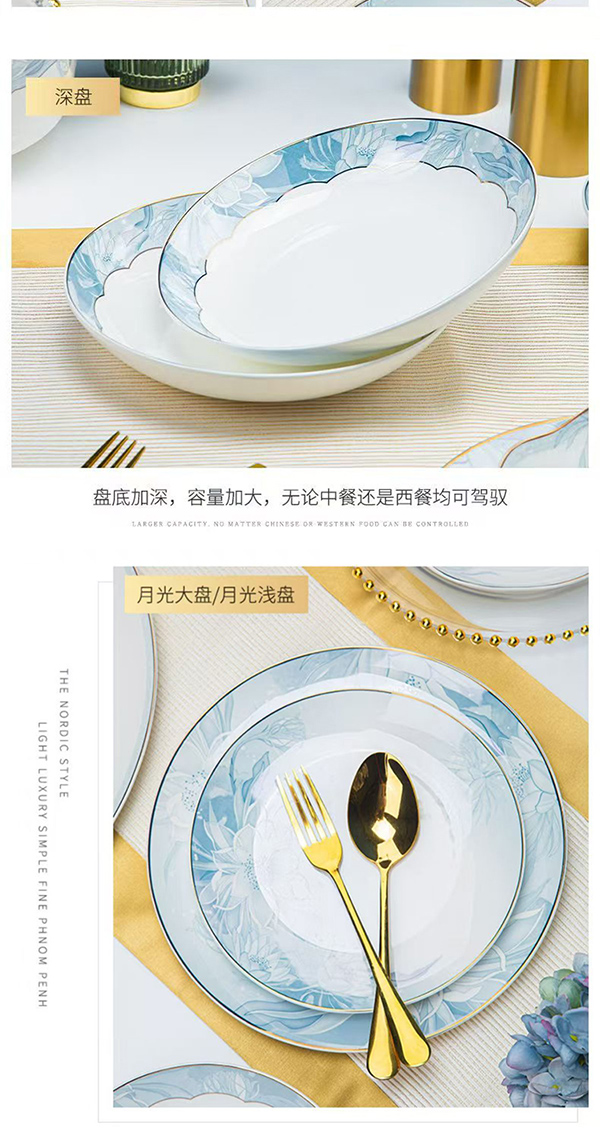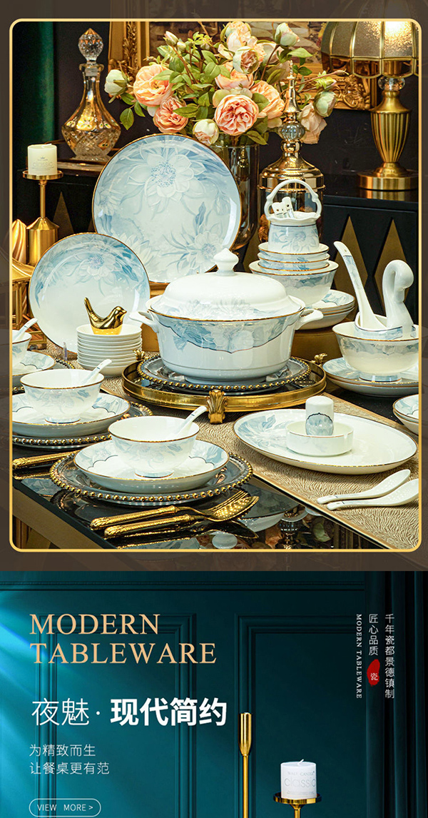 82头碟套装陶瓷家用简约欧式金边景德镇高档轻奢陶瓷碗盘
