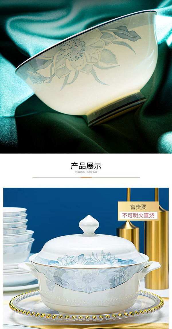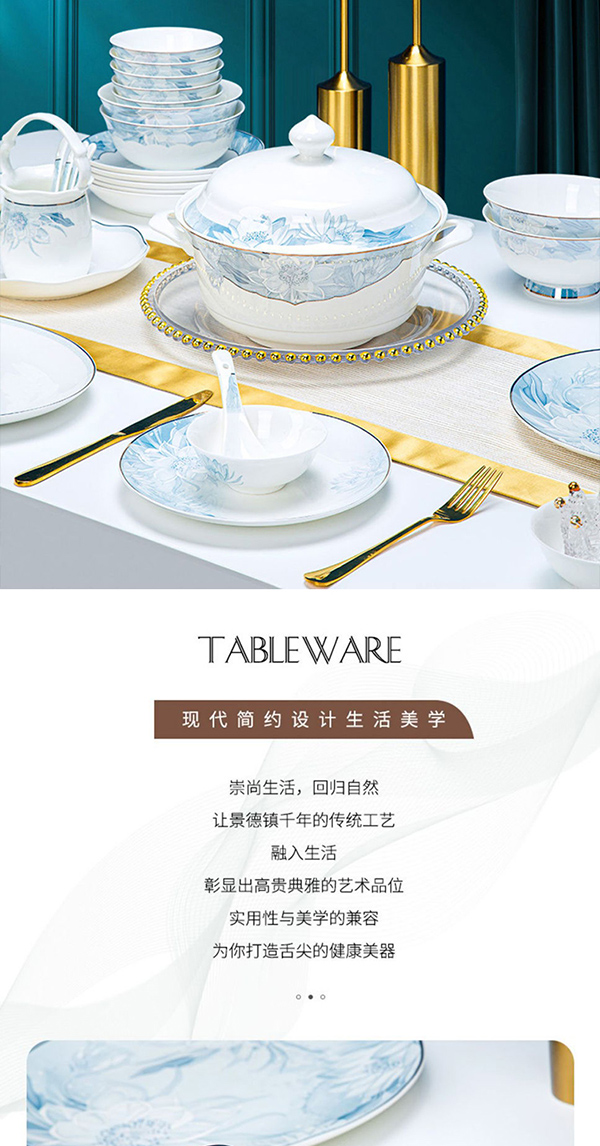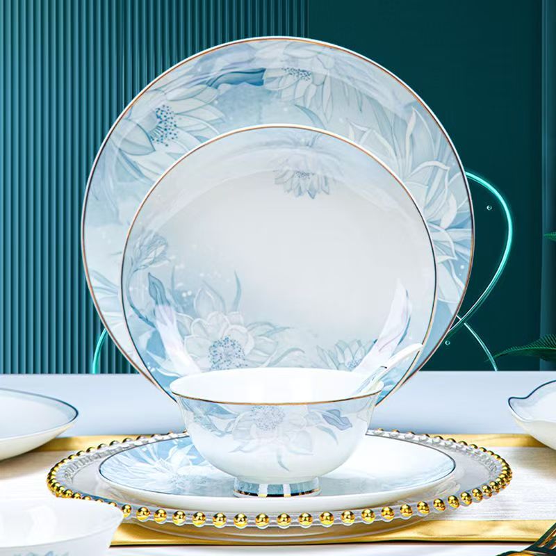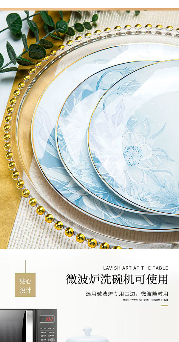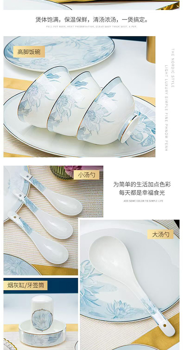 82头碟套装陶瓷家用简约欧式金边景德镇高档轻奢陶瓷碗盘