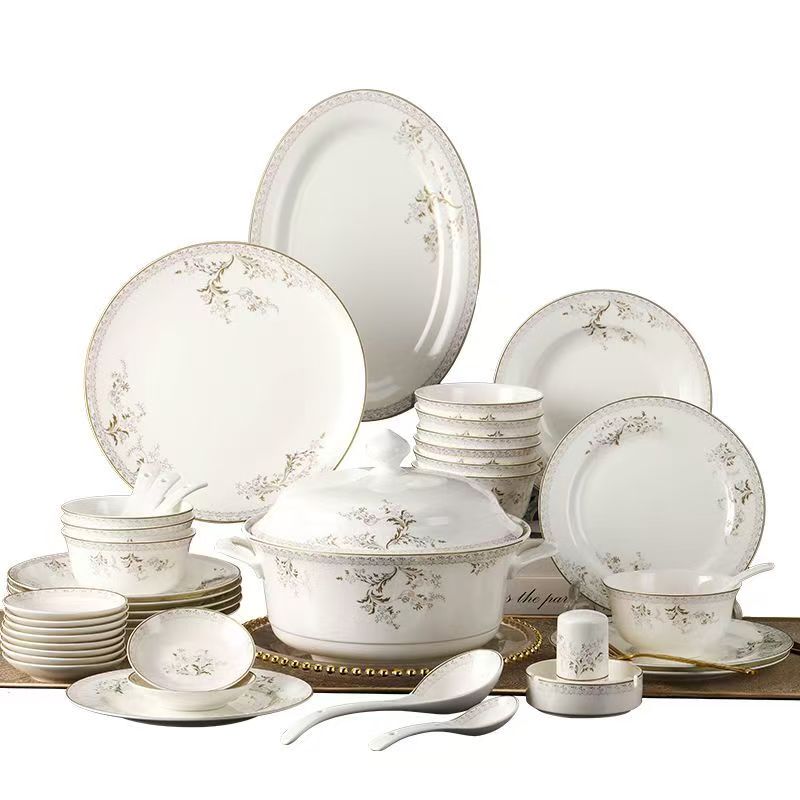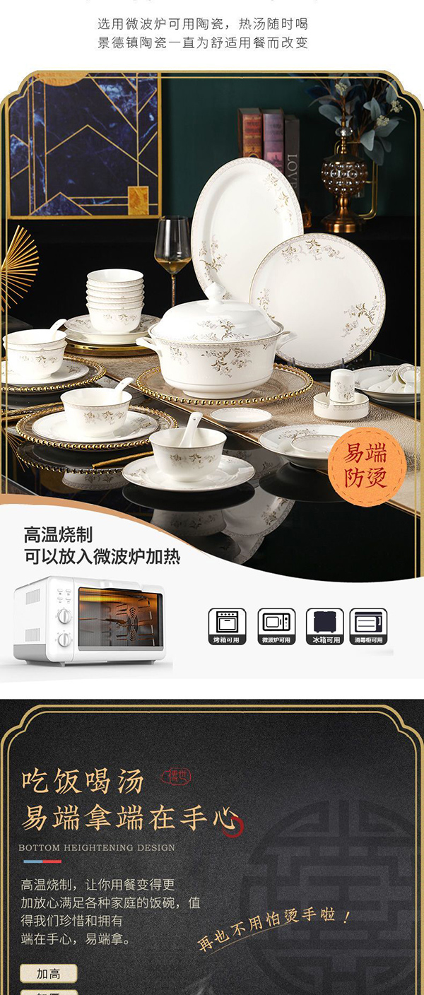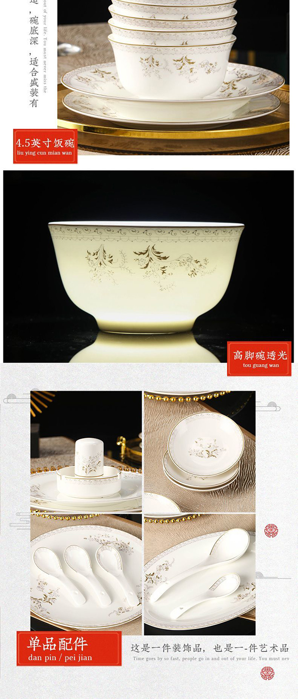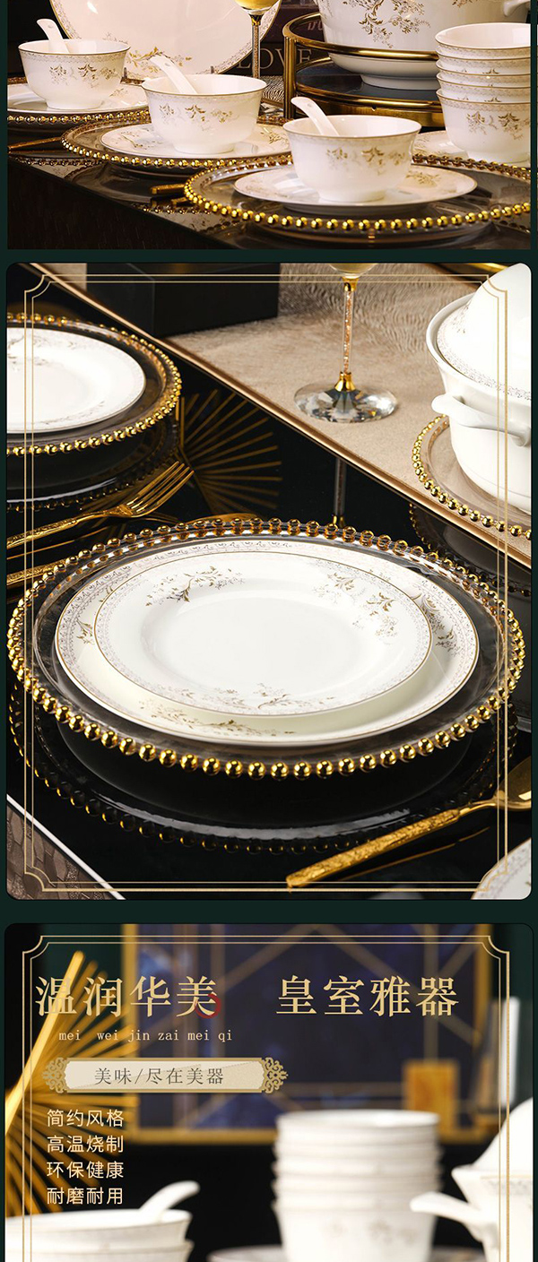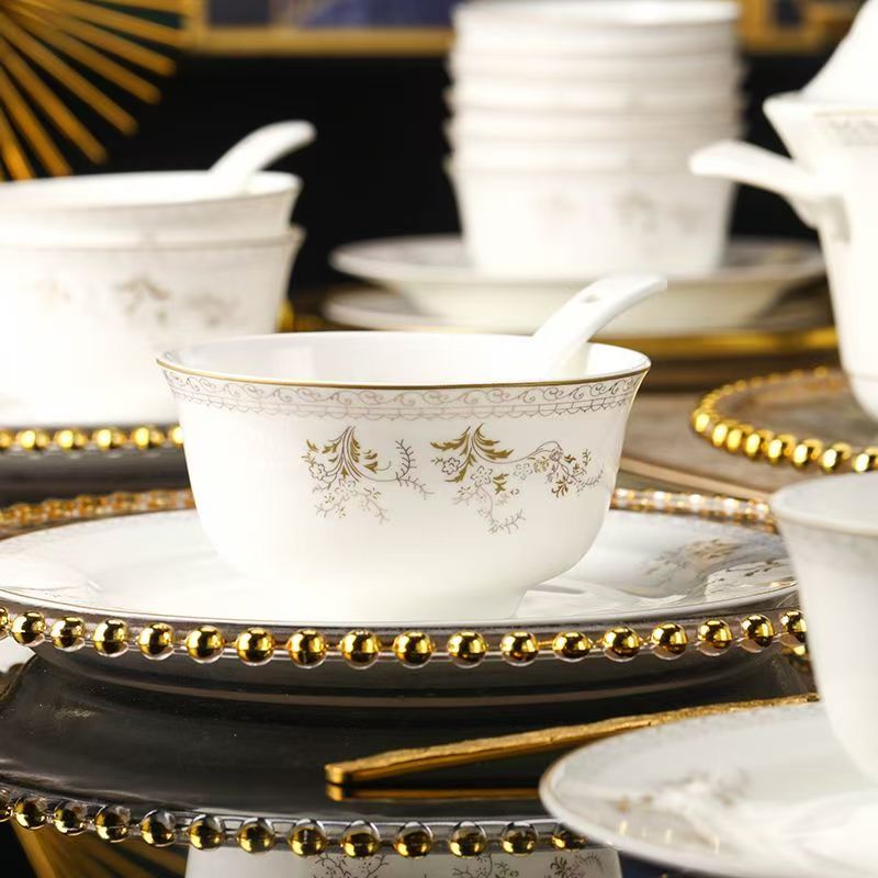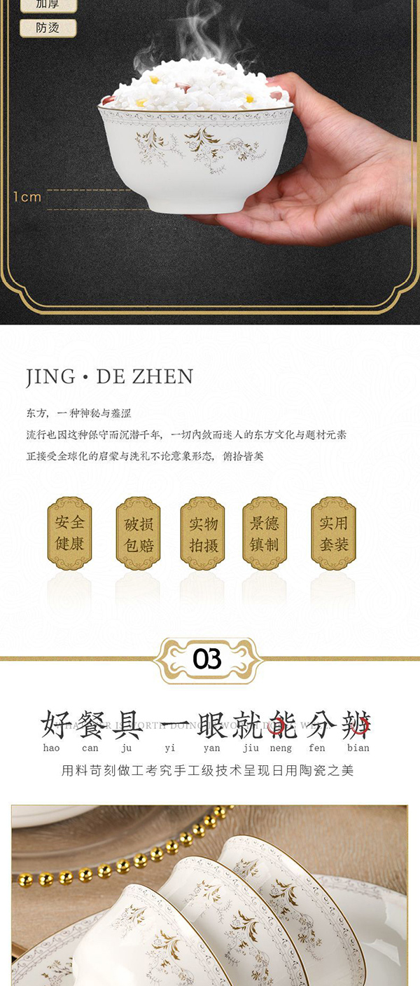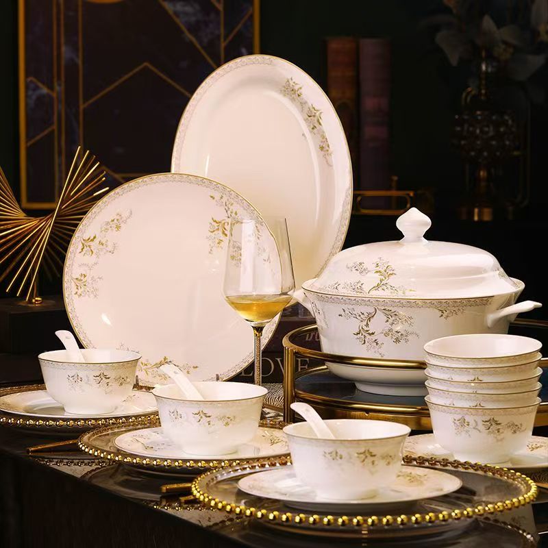 新款碗碟骨瓷中式套装餐具家用景德镇陶瓷碗盘组合乔迁碗筷