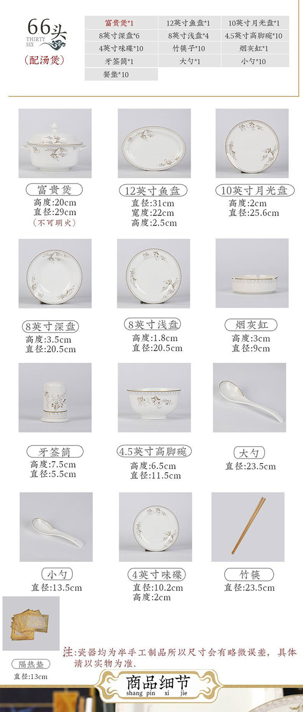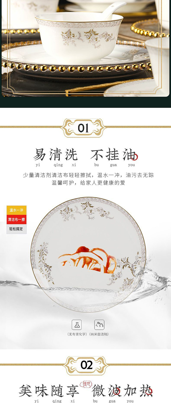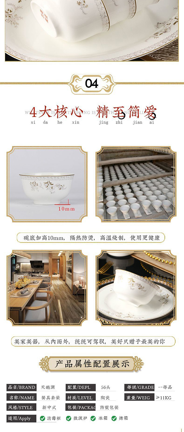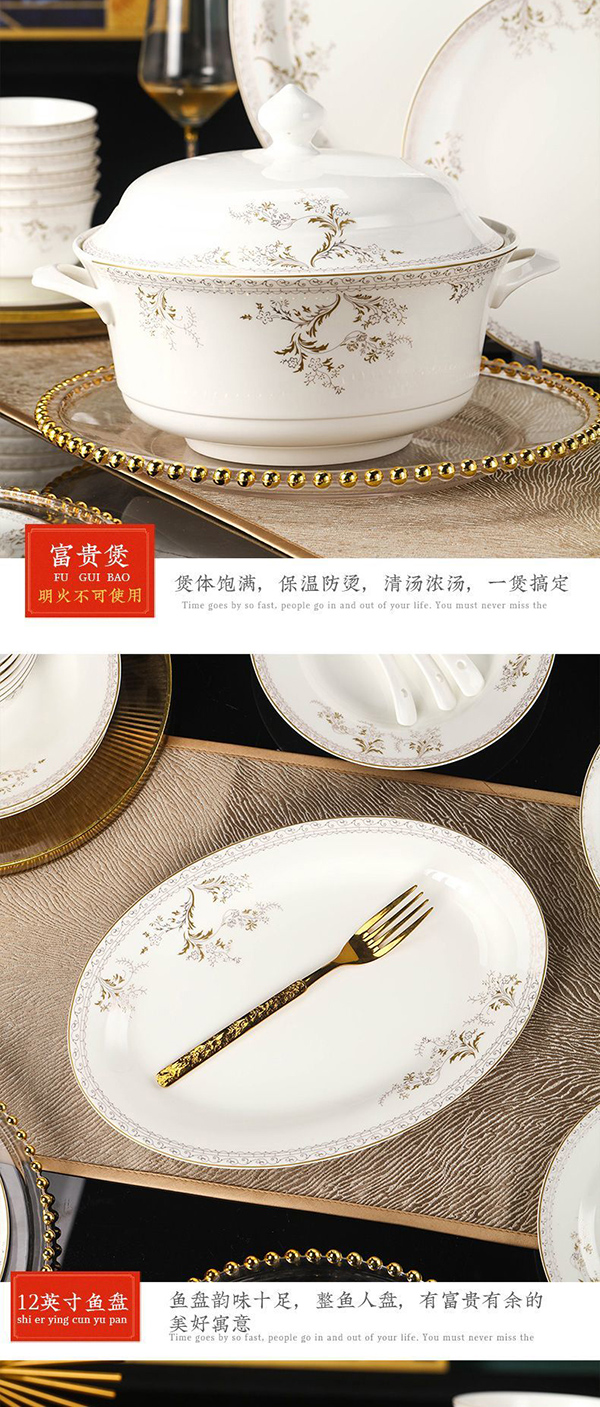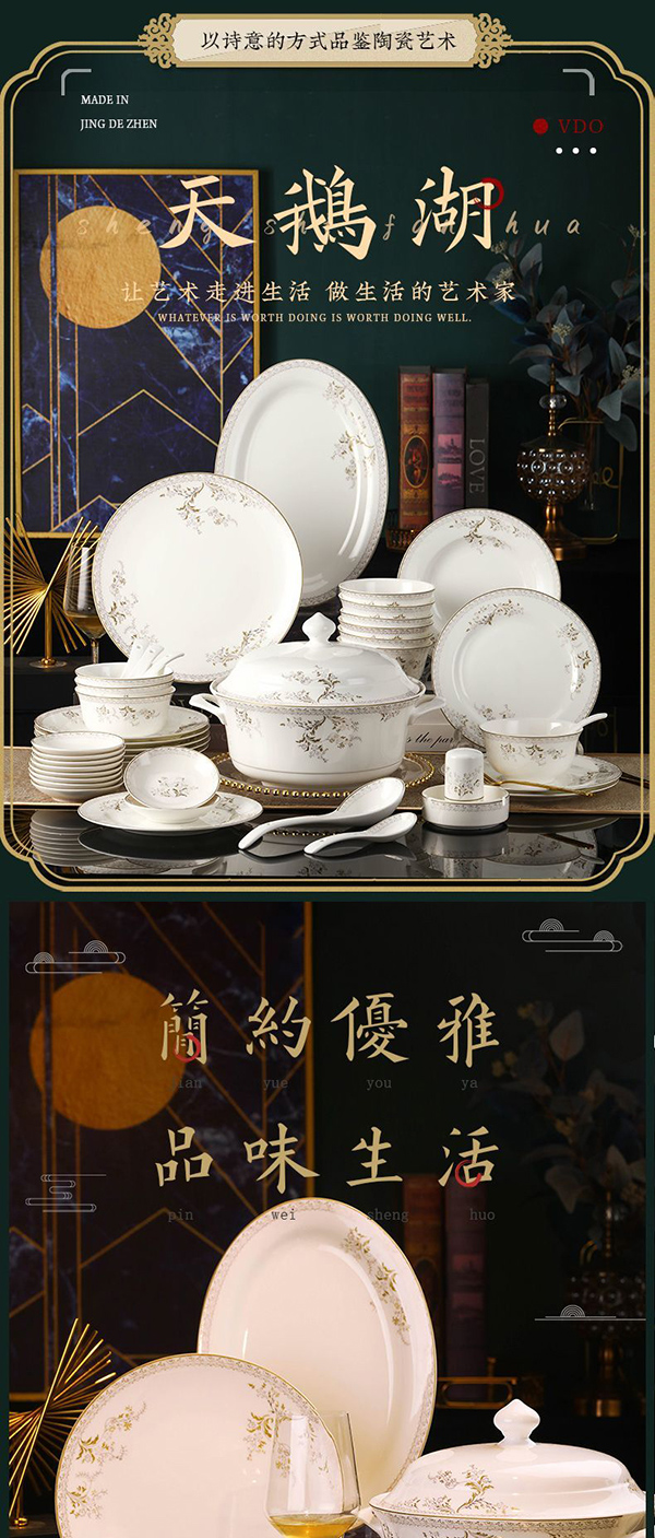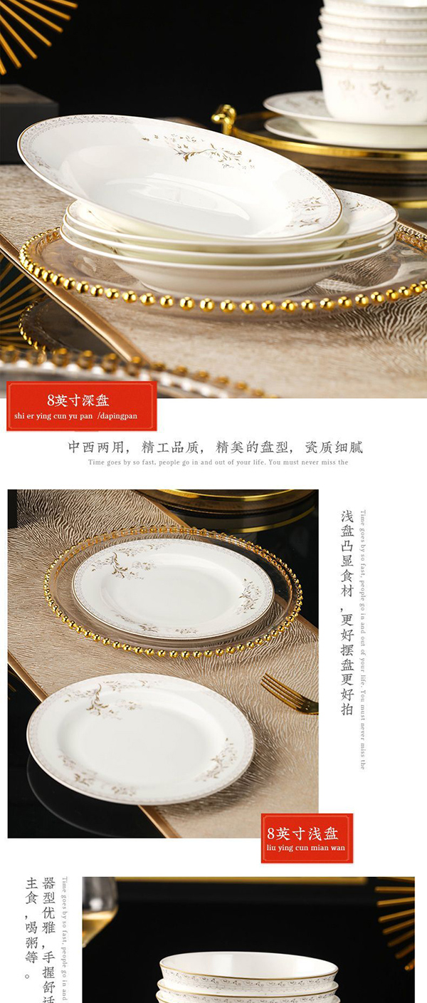 新款碗碟骨瓷中式套装餐具家用景德镇陶瓷碗盘组合乔迁碗筷