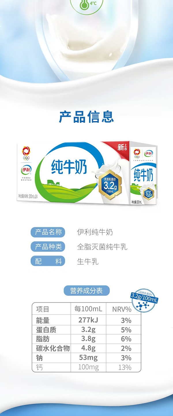 伊利纯牛奶200ml*24盒/箱