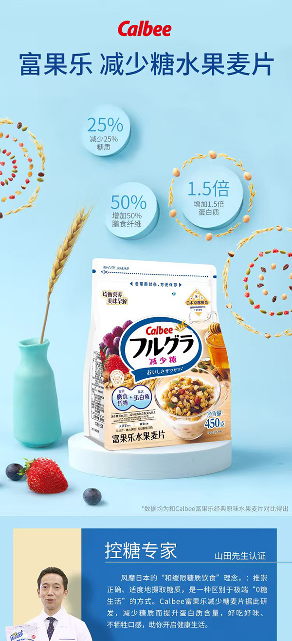 Calbee牌富果乐减少糖水果即食麦片450g