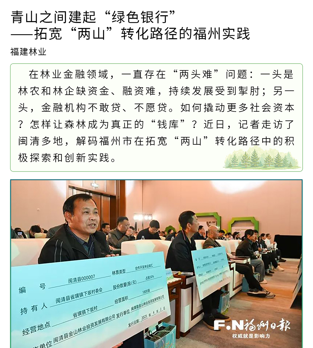 青山之间建起“绿色银行”——拓宽“两山”转化路径的福州实践