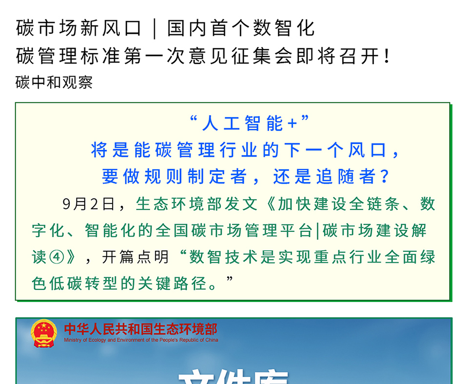碳市场新风口 | 国内首个数智化碳管理标准第一次意见征集会即将召开!