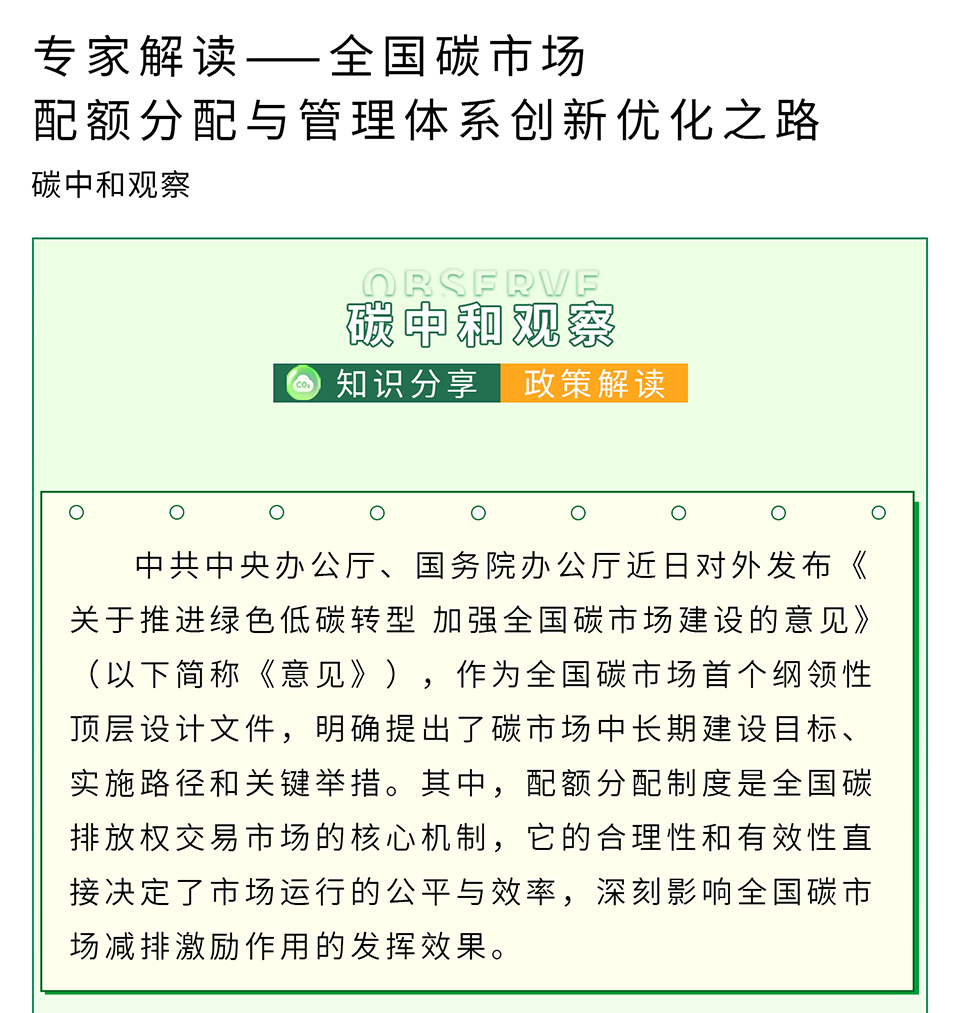 专家解读|全国碳市场配额分配与管理体系创新优化之路
