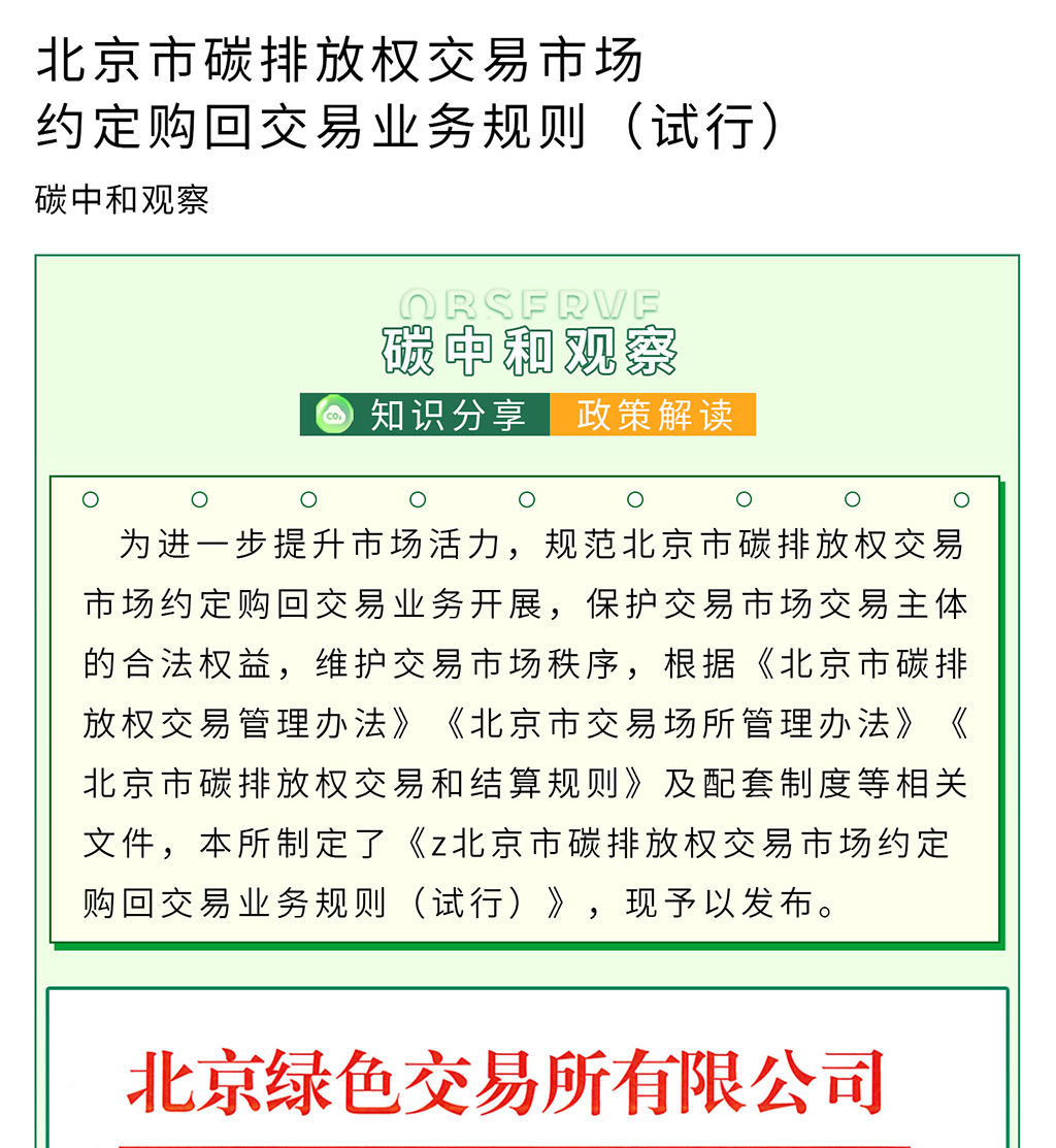 北京市碳排放权交易市场约定购回交易业务规则(试行)