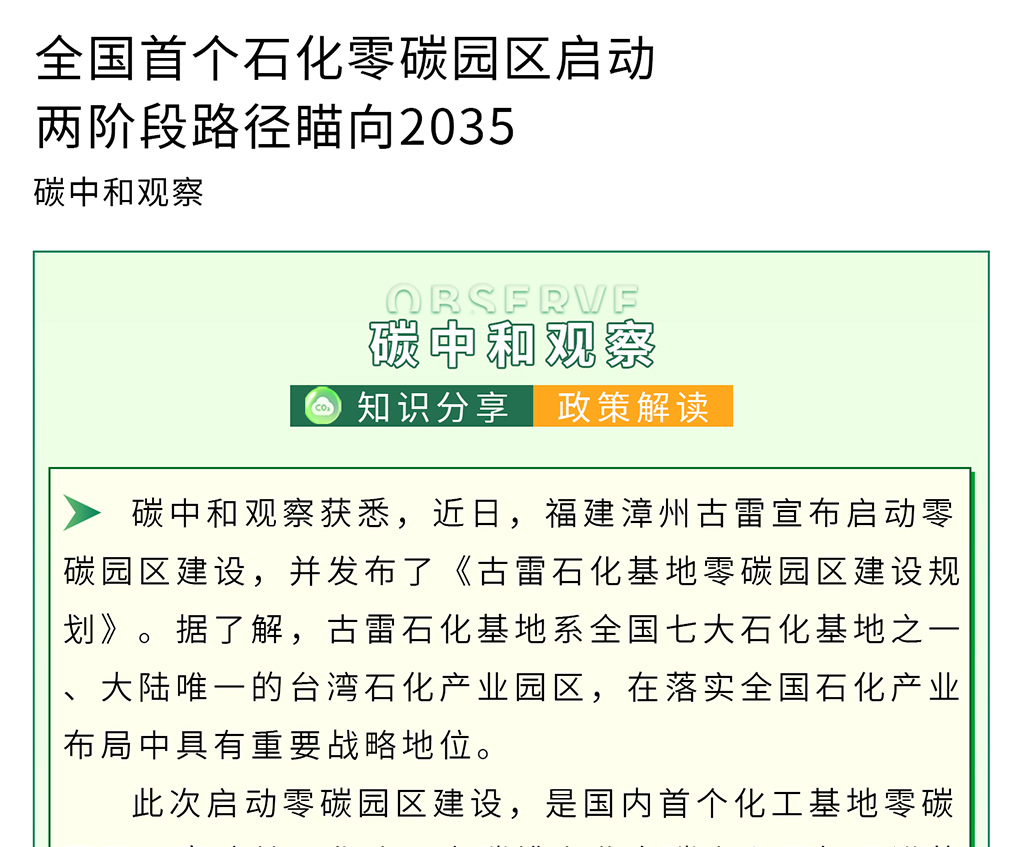 全国首个石化零碳园区启动,两阶段路径瞄向2035