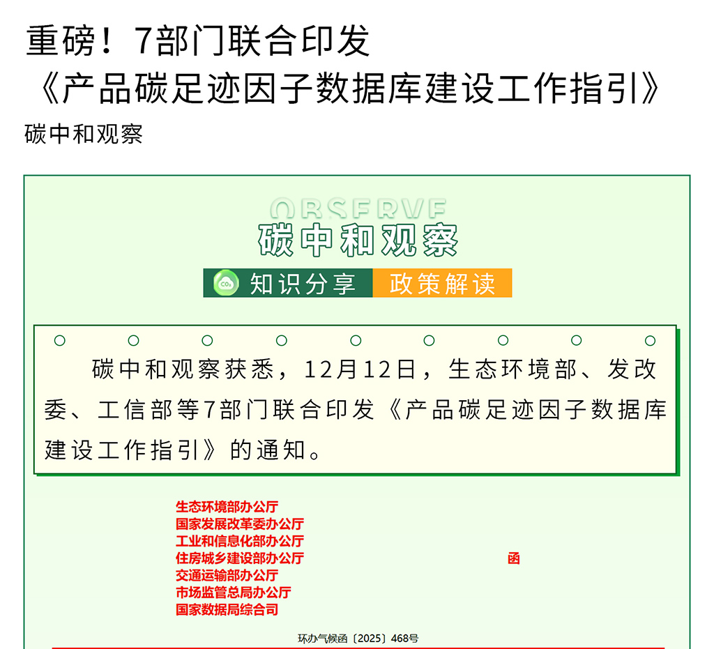 重磅!7部门联合印发《产品碳足迹因子数据库建设工作指引》