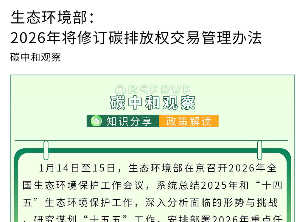 生态环境部:2026年将修订碳排放权交易管理办法